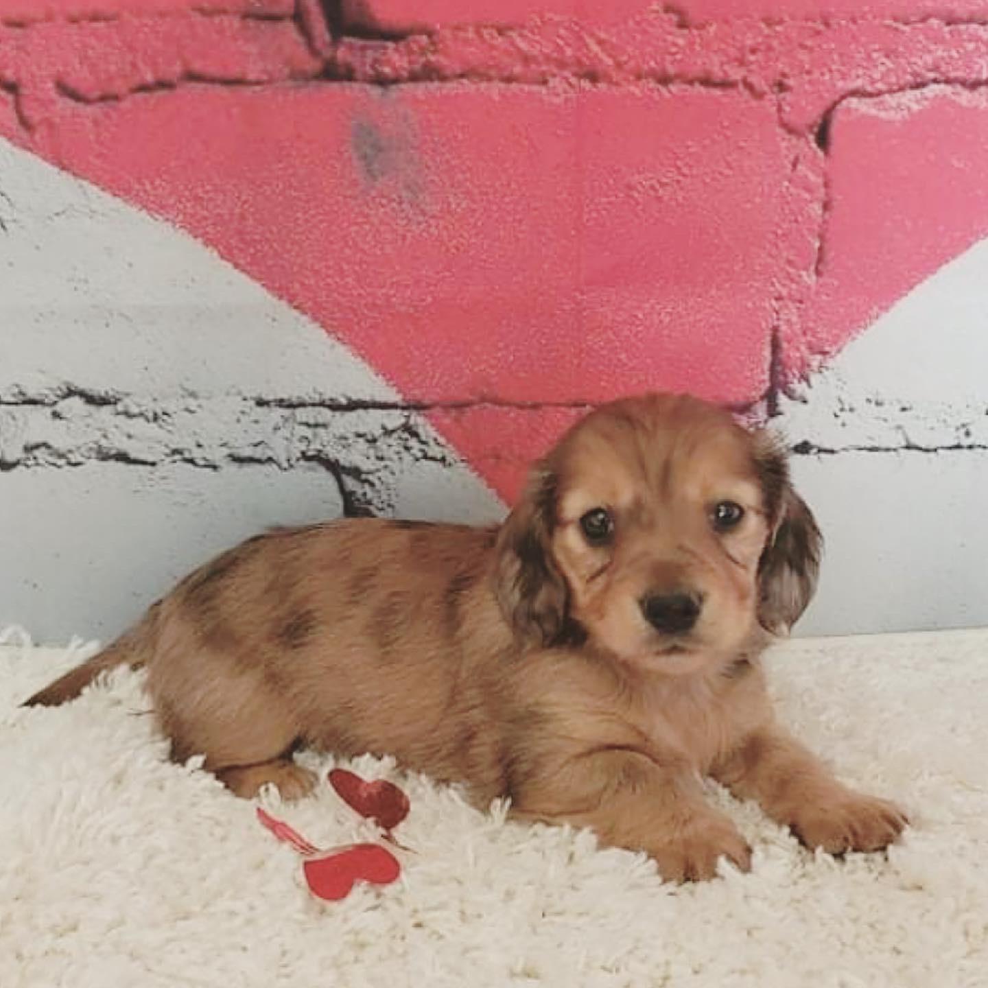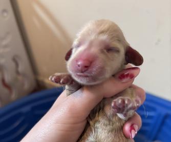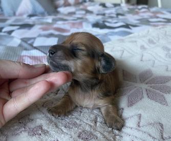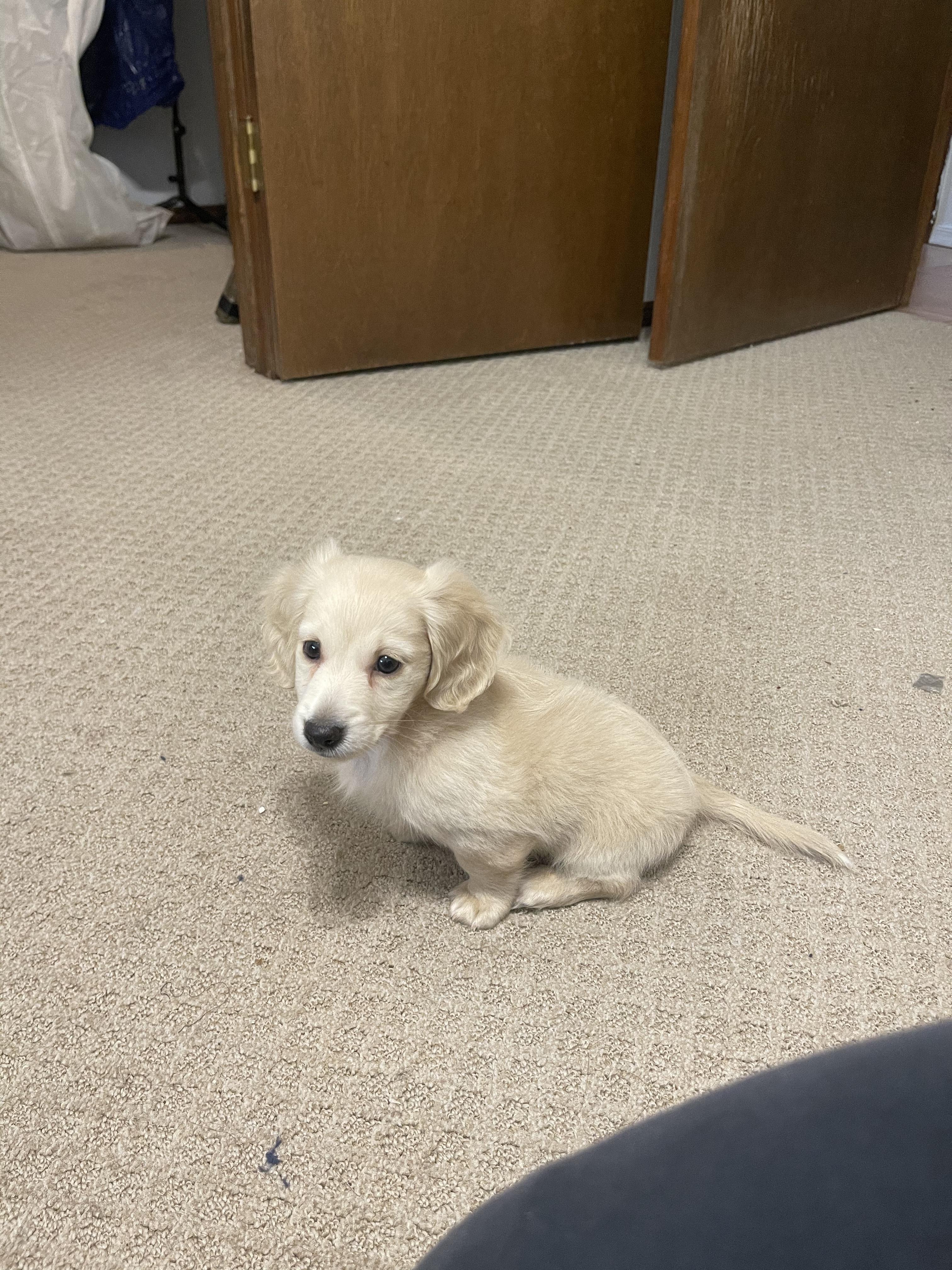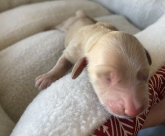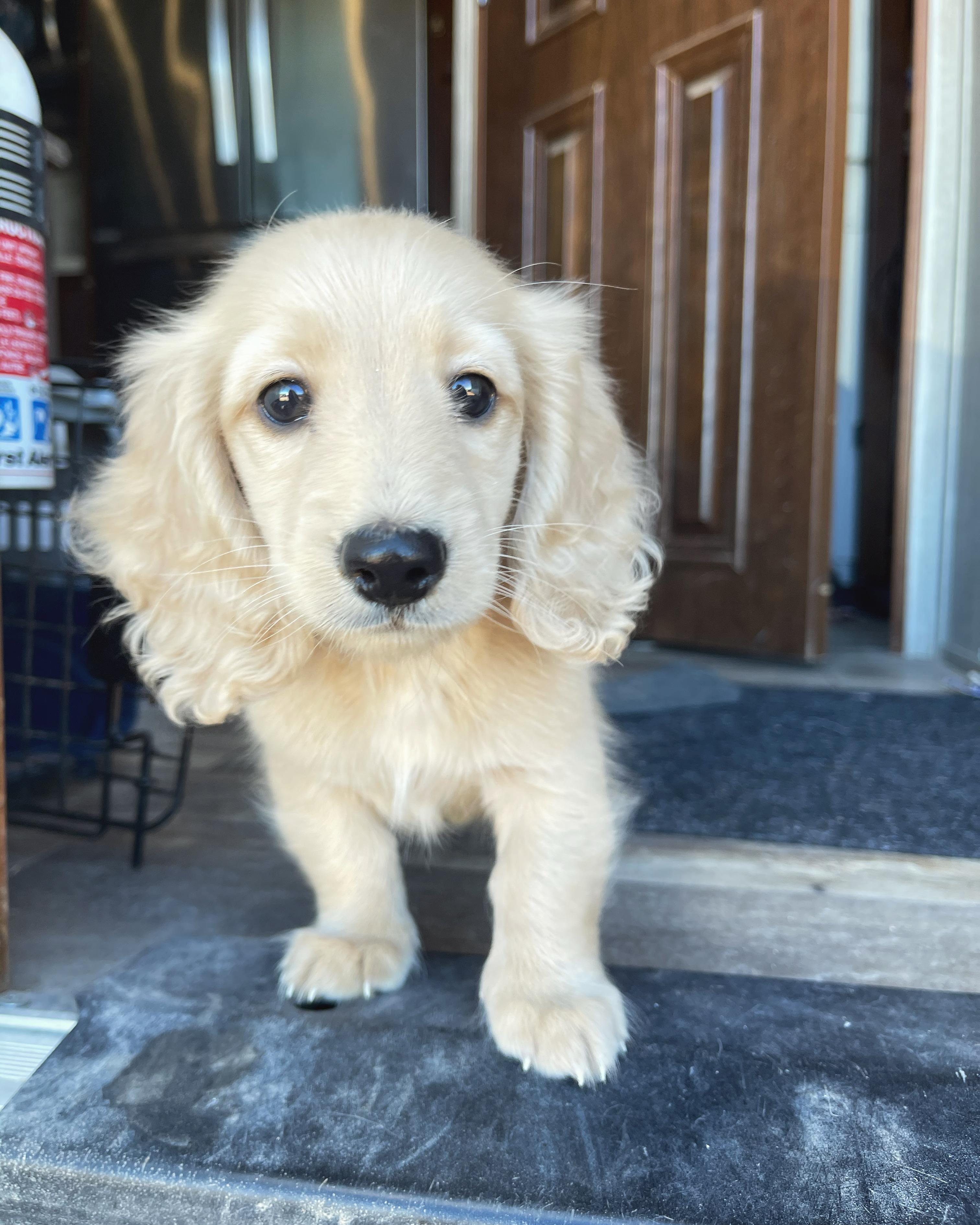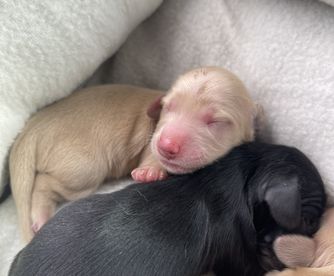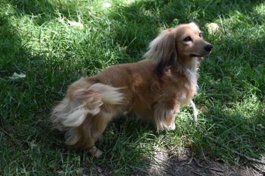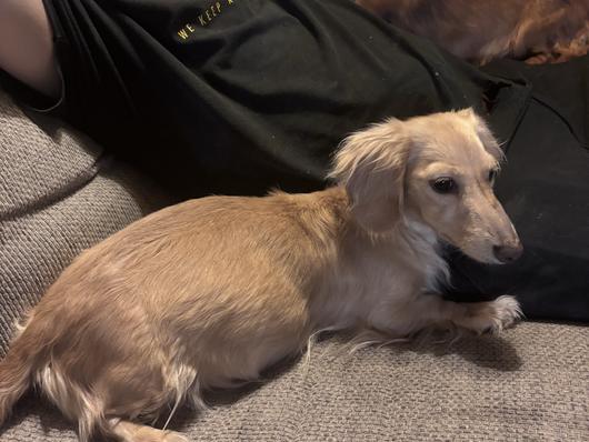 Lily is an ee cream longhair miniature dachshund with a friendly, cuddly, mellow but playful personality. PRA clear