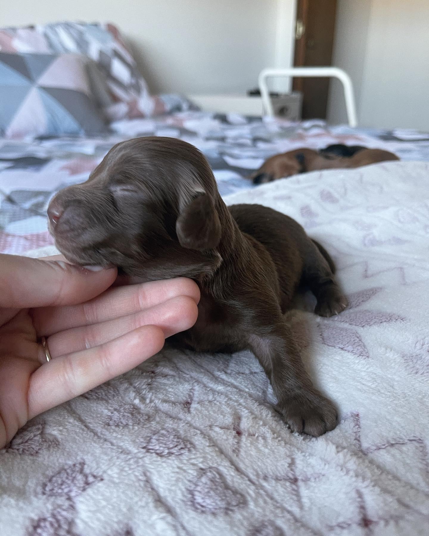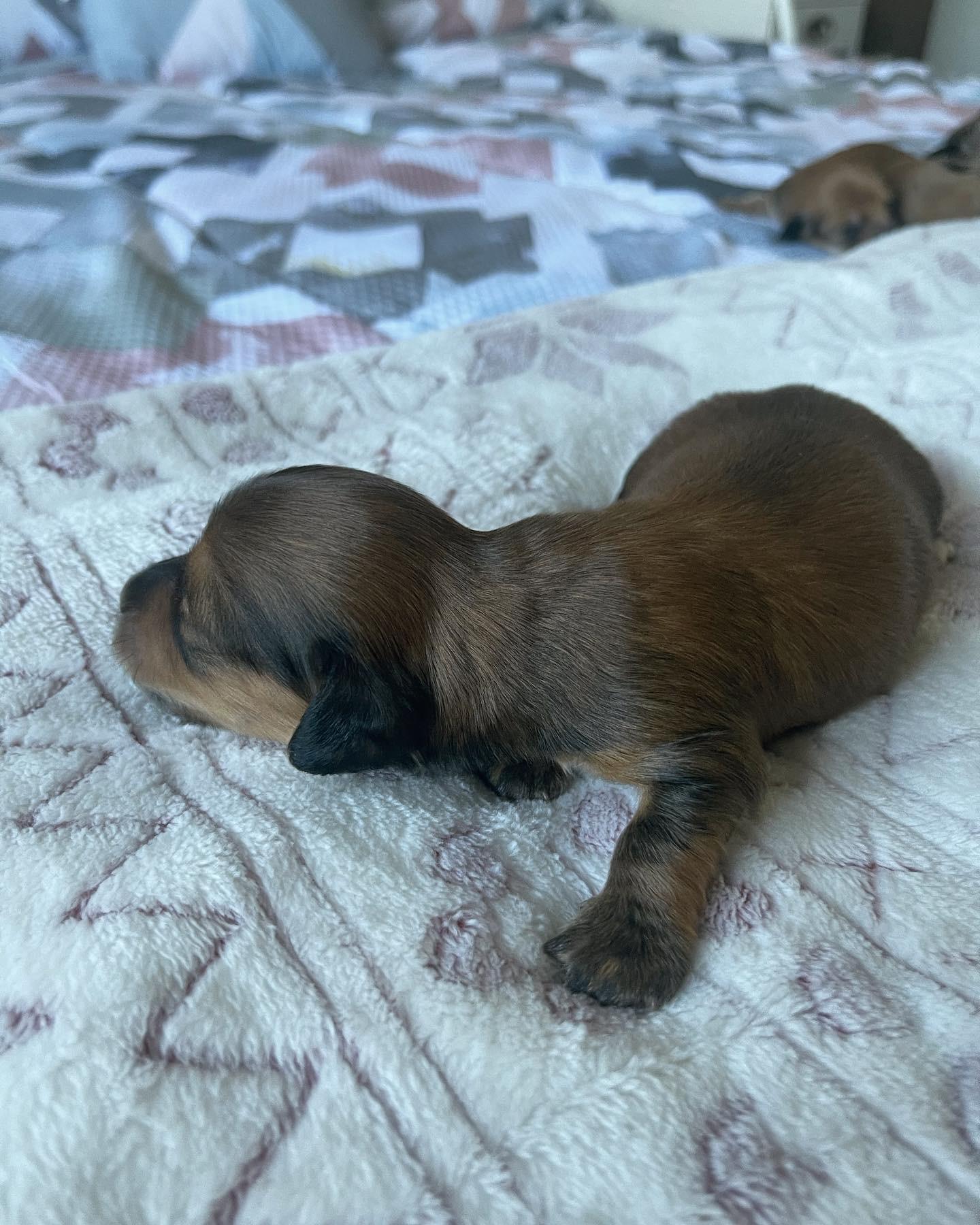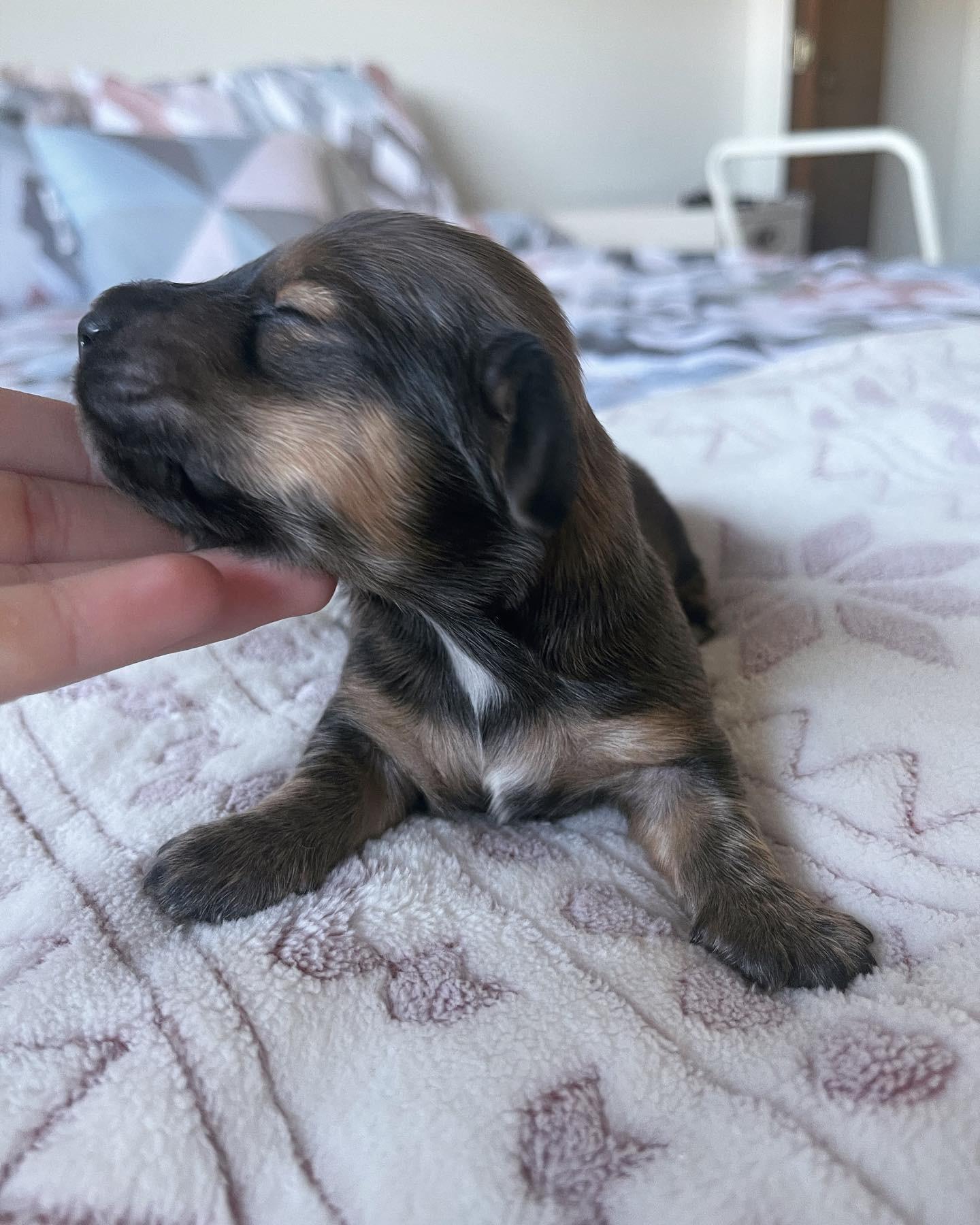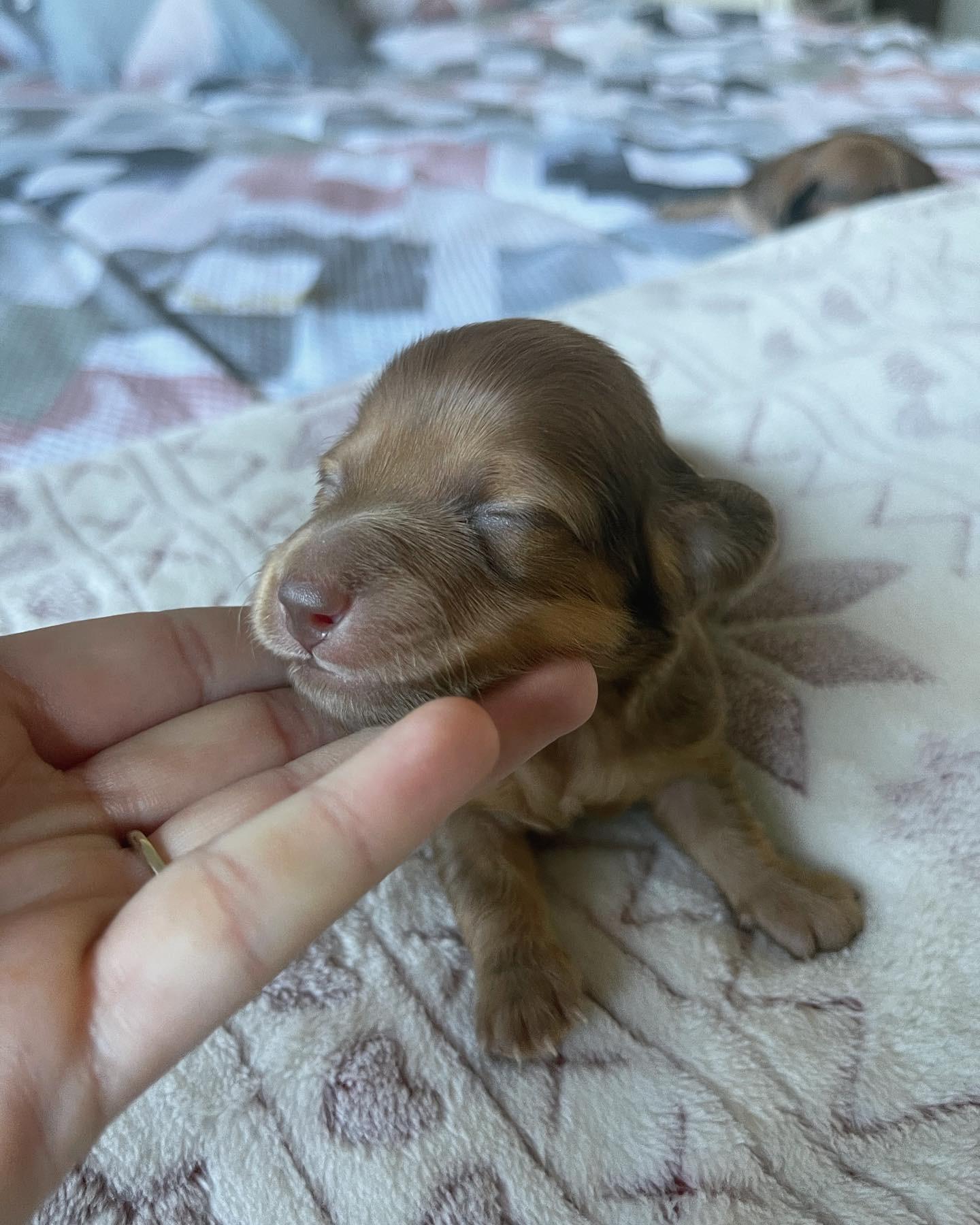 Lily is an ee cream longhair miniature dachshund with a friendly, cuddly, mellow but playful personality. PRA clear
