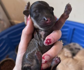 Puppy prices include a $300 non-refundable deposit and between $1,200 - $1,900 final payment, before taxes & fees.