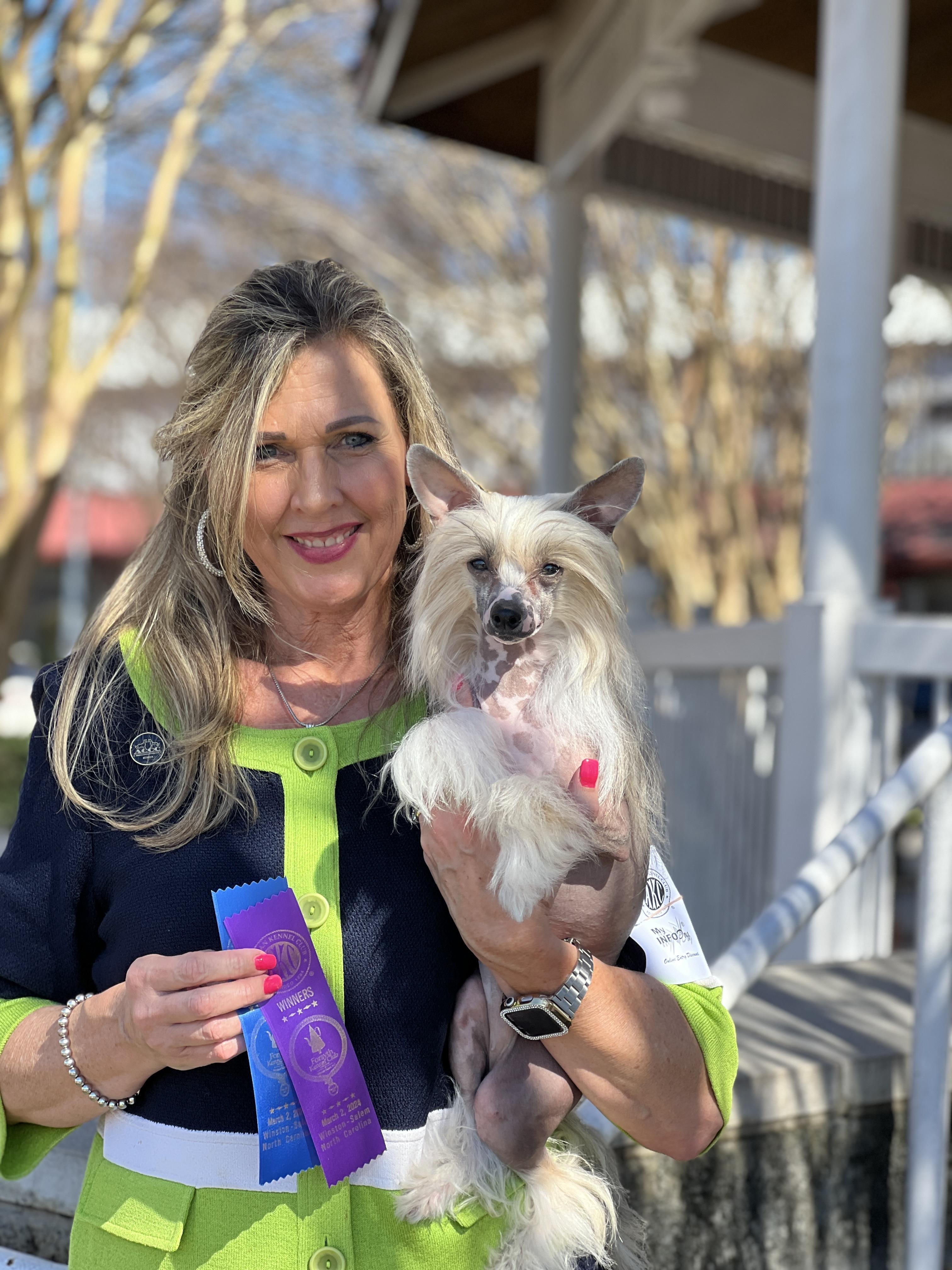 Luisa is a female Chinese Crested. Carefully selected as a great representative of her breed, Julie decided to make her part of their program. Julie has passed Good Dog’s screening process, which involved a review of their breeding practices, environment, and the mental and physical health of their dogs.