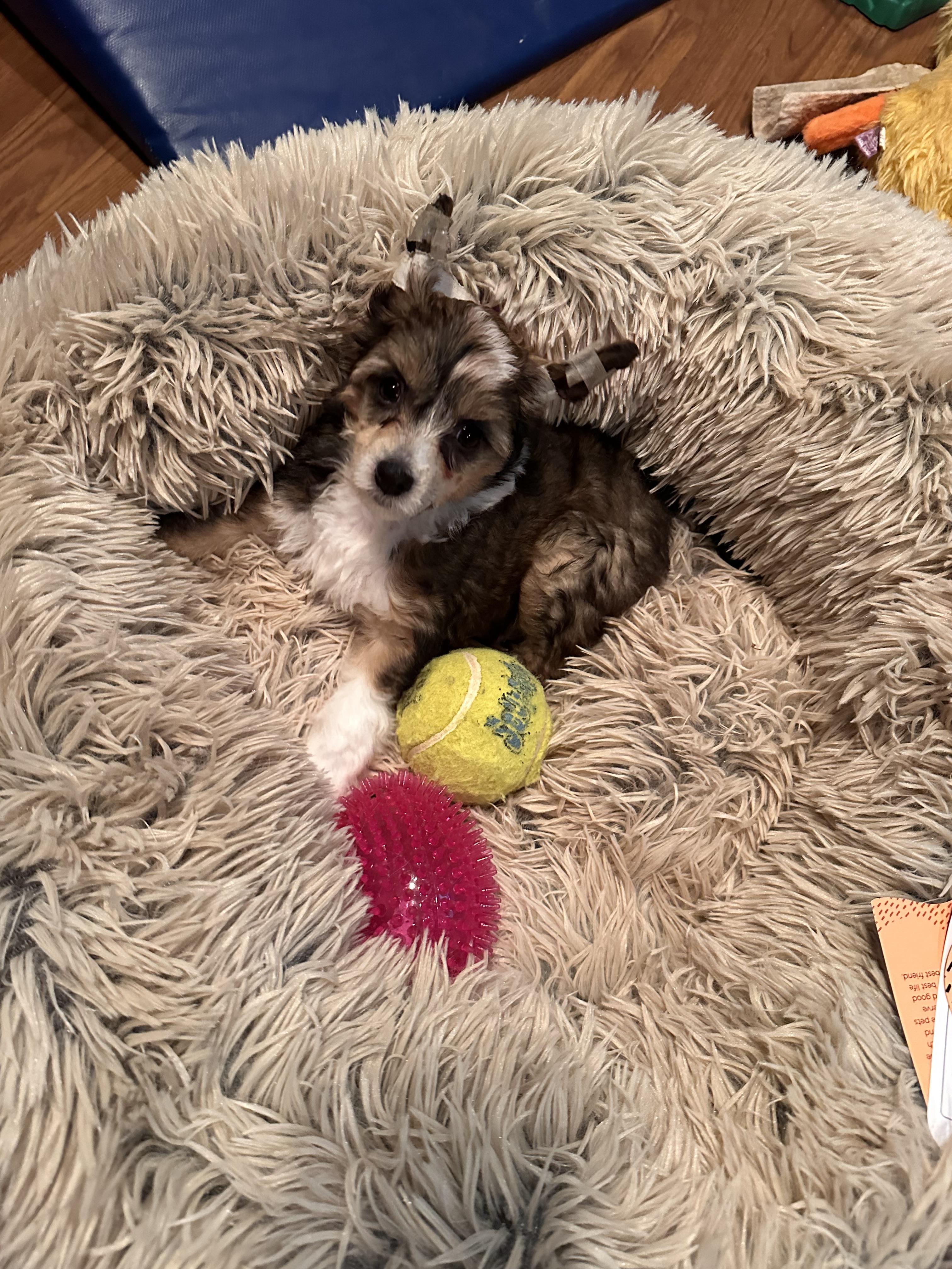 Luisa is very friendly and loves all people. She is very gentle and loves to be with her people. She has done very well in the conformation show ring and he been a fantastic mother to her babies. She gets "Nite Nite" cookies every night, and takes her cookies to her babies to share. She loves chasing chipmunks and squirrels, is always up for a road trip. She has flown to California to enjoy the beautiful forests and beaches there...and certainly enjoys her beach time each year in the deep south. She is a great little traveler and will ride horses with me. She just loves life and adventure.
