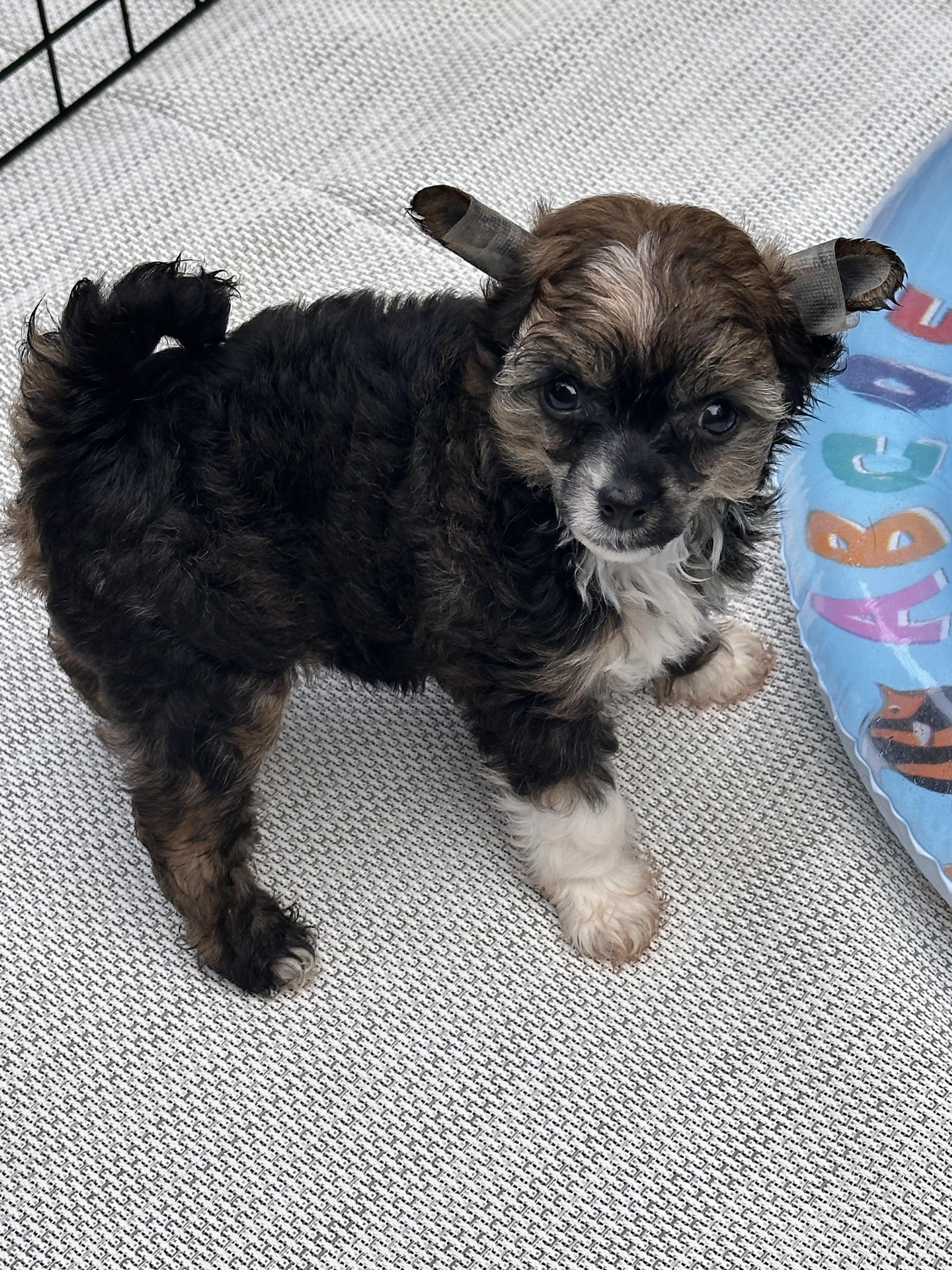 Our Boykin Spaniel puppies include chocolate and liver. Chinese Crested puppies include black white and tan and sable. Poodle puppies include black and white. Colors will vary depending on the parent dogs.