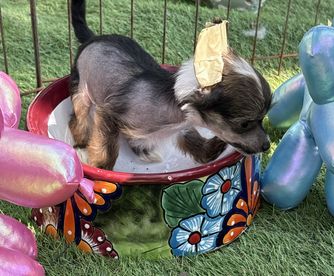 Miracle is a female Chinese Crested. Carefully selected as a great representative of her breed, Justin decided to make her part of their program. Justin has passed Good Dog’s screening process, which involved a review of their breeding practices, environment, and the mental and physical health of their dogs.