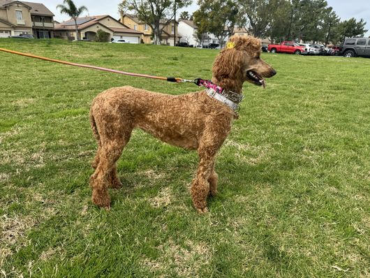 Frankie is my first pure poodle and now I’m a forever fan. She is a great example of the breed with her build and agility but also has great traits that fit our family. She has a need to serve and follow commands, shows eagerness to play or cuddle, has good recall and is trusted by all.