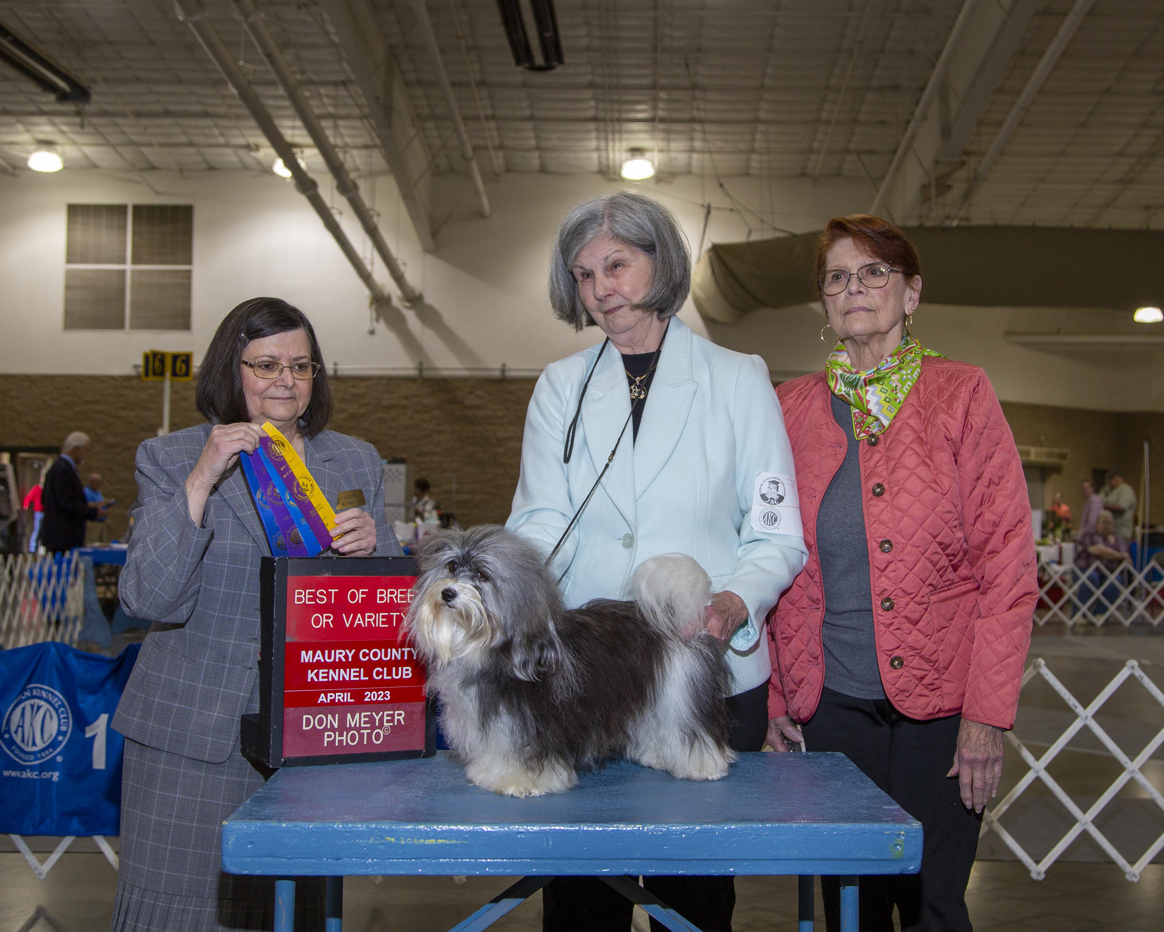 Little Man started his show career with a bang taking Best Of Breed over 75 entries and only 6 months and 1 week old. Finished his championship at 6 1/2 months. He’s charming loving kind of guy.