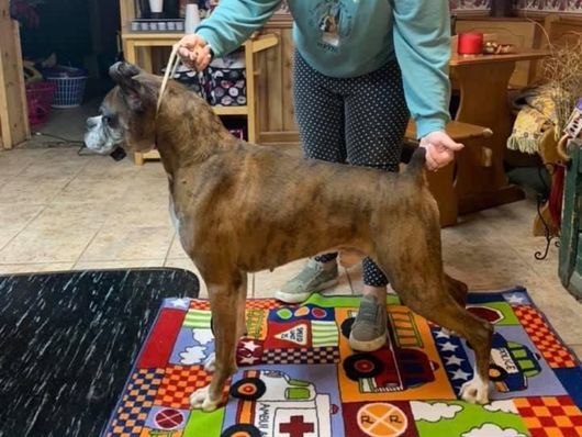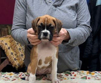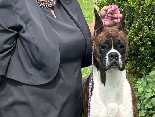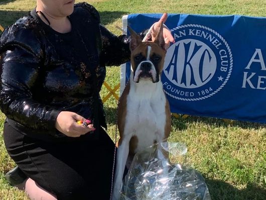 I'm Mary Lynn W., the breeder behind Just-A-Wyn Boxers located in Elyria, OH. For 30 years, we have run our program with care and intention in every step. We care deeply about our dogs and this breed. We are experienced breeders, and we take our role seriously. We take pride in both their accomplishments in the ring and their amazing temperaments and abilities at home. They produce wonderful pups, and we are happy to be able to provide other families and individuals with extraordinary puppies.