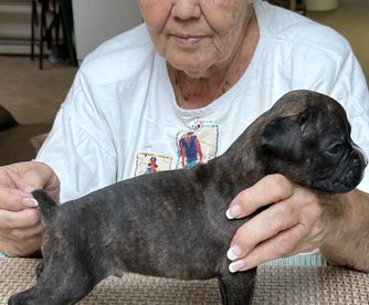 I'm Rebecca K., the breeder behind Justified Boxers located in Mt Juliet, TN. We care deeply about the Boxer and breed to help ensure the health and future of these wonderful dogs. We breed to keep the Boxer's touch-but-whimsical nature intact. We health test to prevent heritable diseases for my dogs & future owners. We devote time extensively on socialization & obedience for all of our puppies.