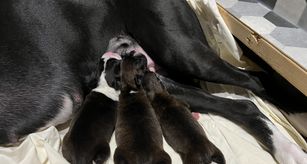 Our puppies include fawn and brindle. Colors will vary depending on the parent dogs.