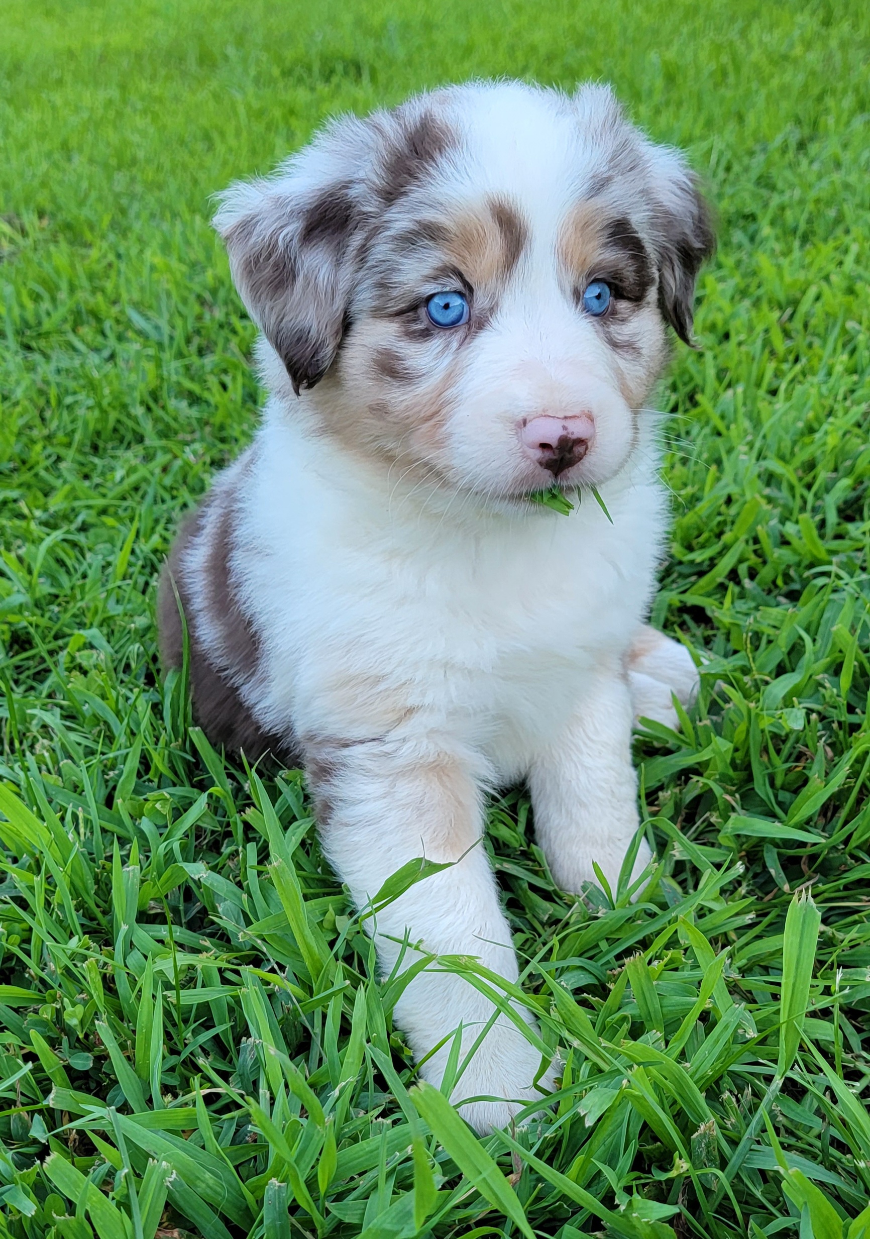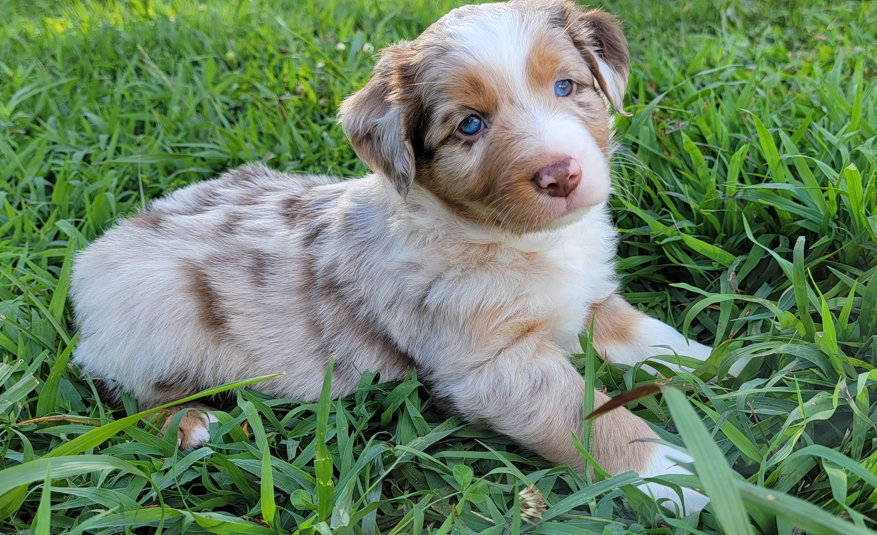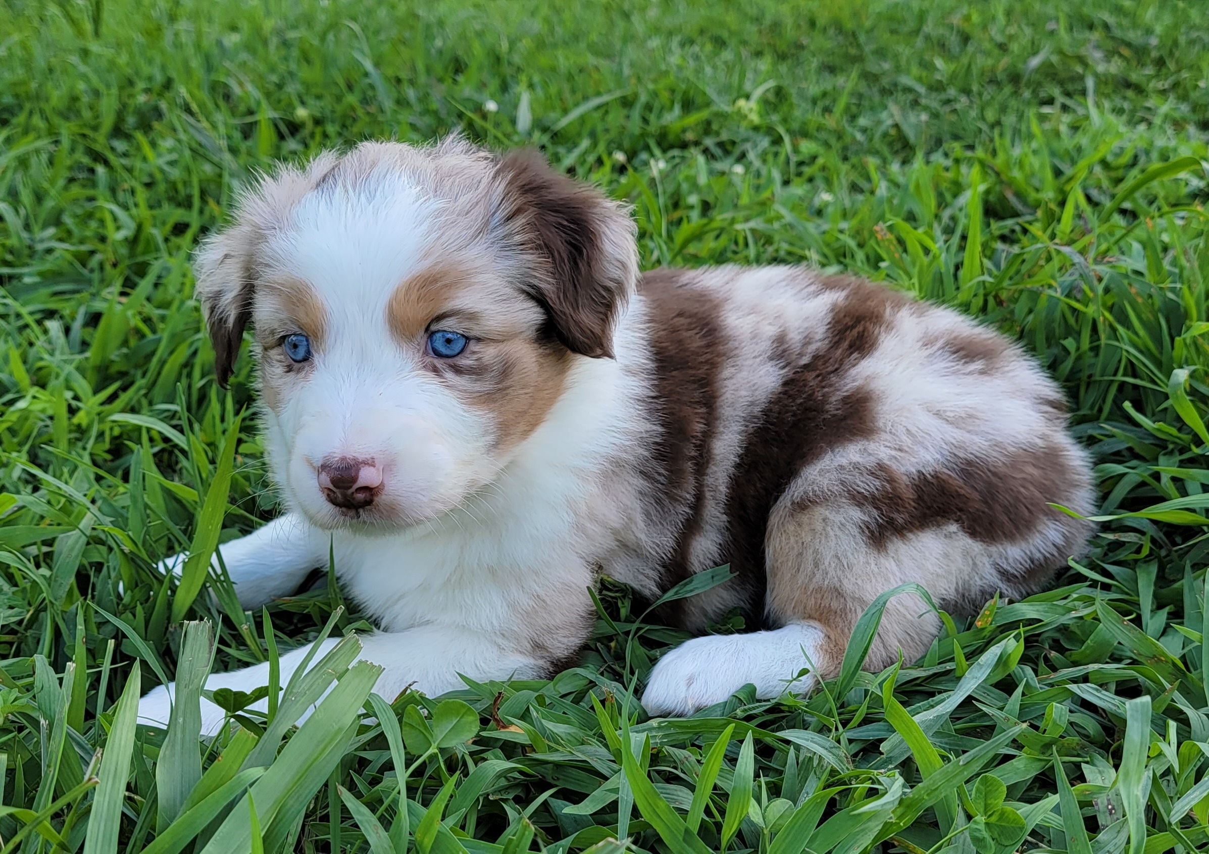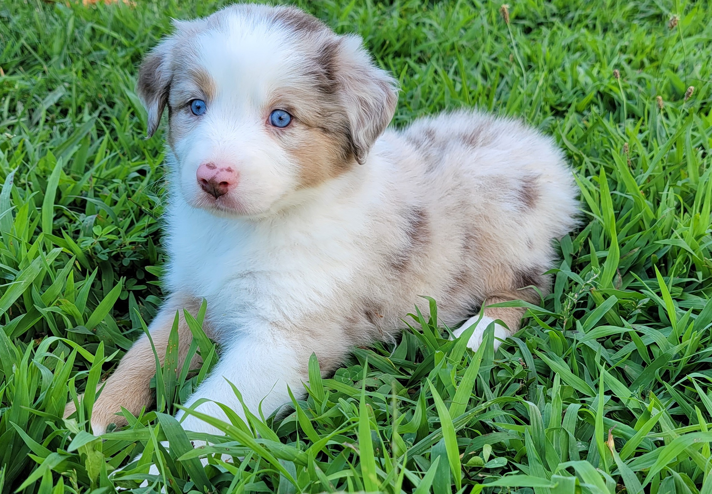 Our puppies include red merle and red tri-color. Colors will vary depending on the parent dogs.