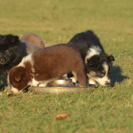 Our puppies include blue merle, red merle, red, and black. Colors will vary depending on the parent dogs.