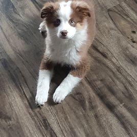 Katie was very easy to work with knowledgeable about the breed ,description of the puppies and there energy level was very accurate. I fell we hit the jackpot with our puppy she has a lot of energy but will sit or lay down beside you an rest when you are ready to.