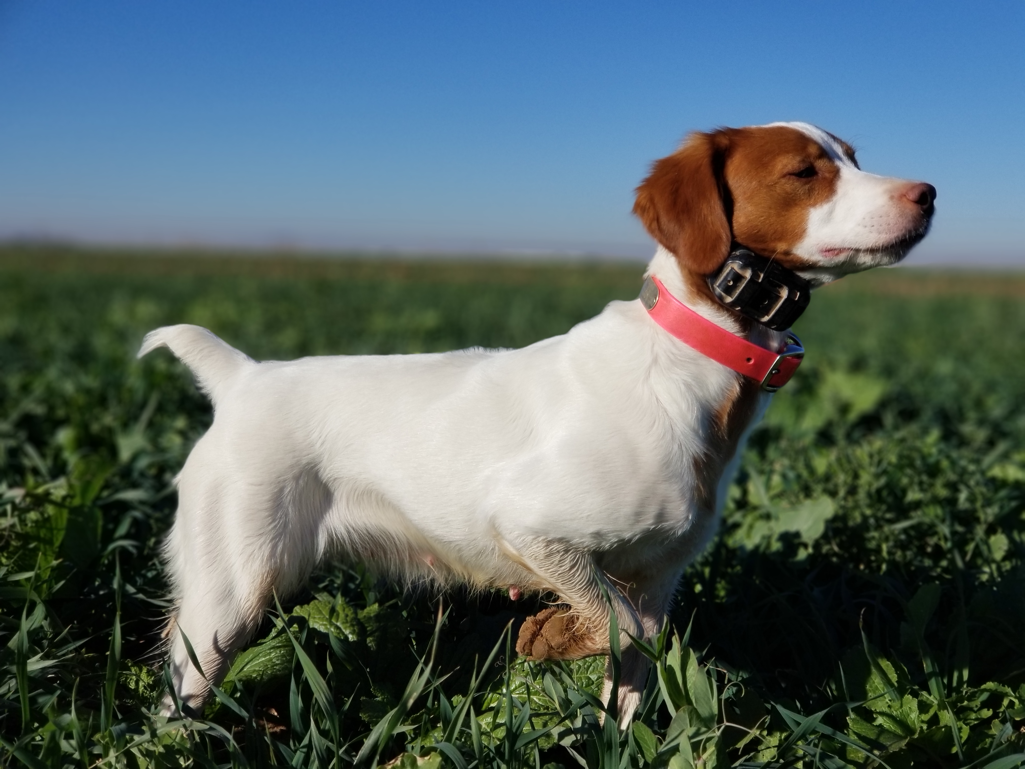 Marquee is a female Brittany. Carefully selected as a great representative of her breed, Arlette decided to make her part of their program. Arlette has passed Good Dog’s screening process, which involved a review of their breeding practices, environment, and the mental and physical health of their dogs.