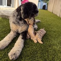 Our dogs are our family. I am with our mama's every step of the way from birth through puppy rearing. I am always in contact with the babies from birth to give them the best start in life. I asist the moms with delivery and sleep next to our babies for the first 3 weeks of life. These babies are my passion and I put my heart and soul into each one.