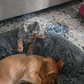 I started breeding because of the love I have for the dachshund breed. They are the spunkiest, stubborn, affectionate little guy's around. They may be little but their personalities shine bright!