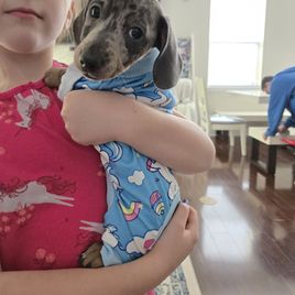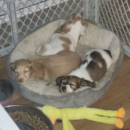 Julie was the perfect match for me as a breeder! She was knowledgeable and so attentive to sharing many updates on the puppy’s growth throughout the process and how their personality was developing. She was so kind to send us home with a whole goodie bag of information on training, toys, treats, and a special blanket to remind my puppy of her momma. I am a first time dog owner and first to buying from a breeder and I can’t imagine the process going any smoother. The dogs are clearly well socialized with Julie’s other pets at home, as well as her kids. It is pertinent to say that the puppies come from a loving and safe environment for the first 8 weeks of their lives! I LOVE K Rae’s Dauchsands!