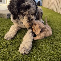 Julie was amazing from start to finish. She was always keeping us up to date with photos and videos of Mella. And letting us know about her hitting all her mild stones . She cares alot about the breed . One of my favorite things about her was the letter written to us in Milla's point of view 😍. We are planning on getting a second pup in a year , and we are definitely coming back to Julie . Lots of love Mella , Andrew and Yolandi
