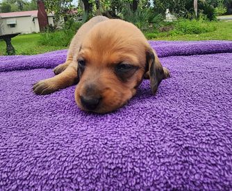 I'm Julie N., the breeder behind K Rae's Dachshunds located in Lady Lake, FL. We’re devoted to ensuring there are healthy puppies for others to enjoy and we do so by responsibly growing this incredible breed. Our puppies are raised with love in our home, and we strive to help each one grow up with confidence so they are ready to thrive with their new families. They are affectionate, intelligent, and cute as can be!