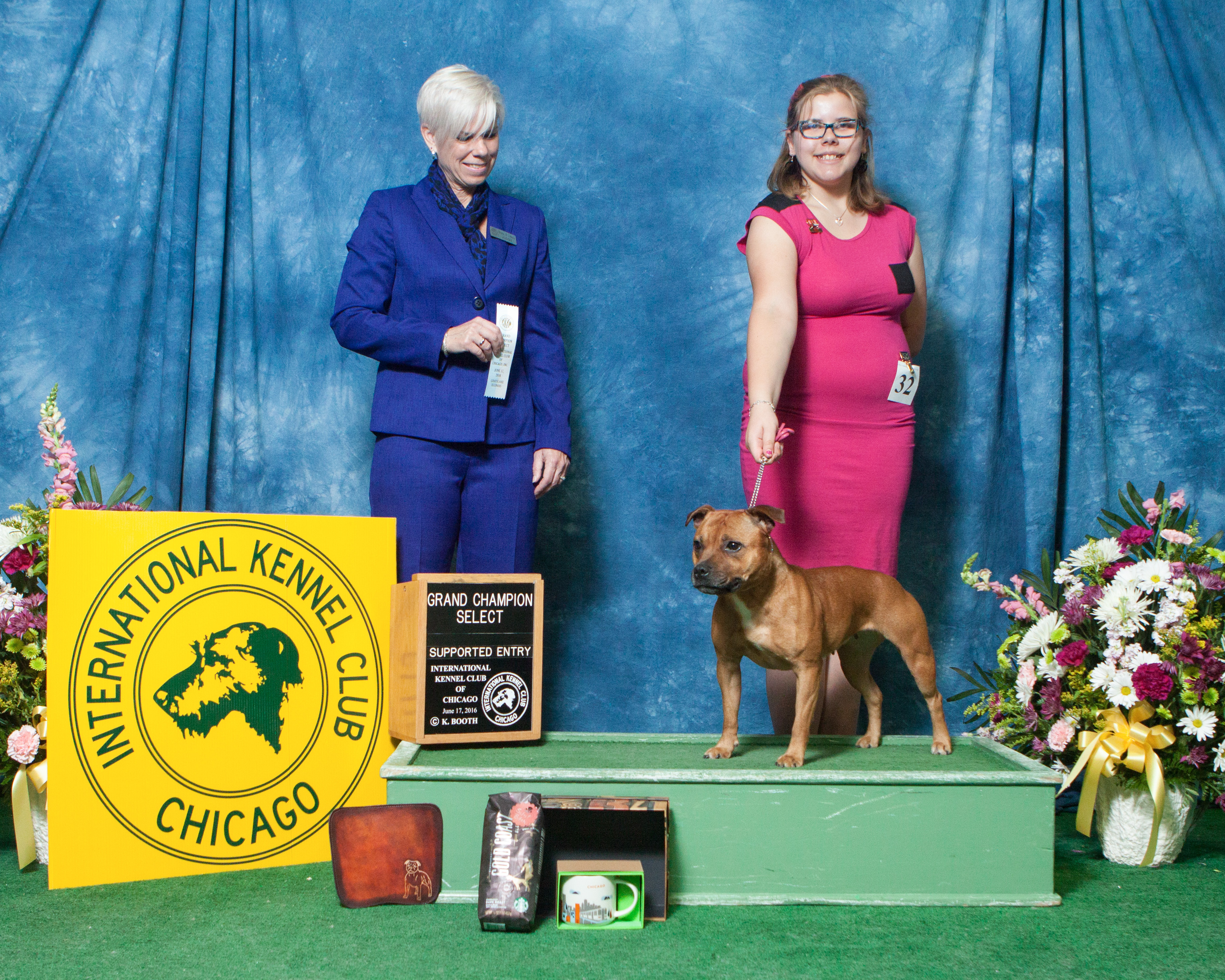 Chrysanthemum is a female Staffordshire Bull Terrier about 9 years old. Carefully selected as a great representative of her breed, Brenda & Katherine decided to make her part of their program. Brenda & Katherine has passed Good Dog’s screening process, which involved a review of their breeding practices, environment, and the mental and physical health of their dogs.