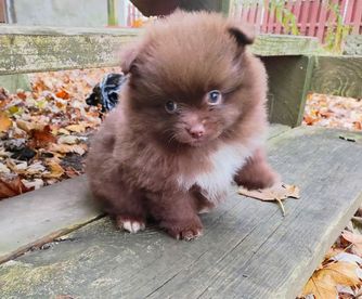 Our Pomeranian puppies include chocolate and black and tan. Shetland Sheepdog puppies include black and white, sable and white, black white and tan, sable merle and white, and blue merle and white. Colors will vary depending on the parent dogs.