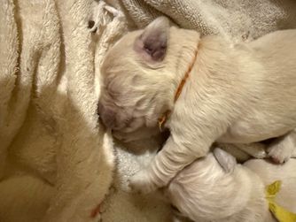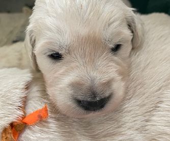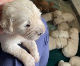 “AKC limited reg. Parents have OFA clearances hips, elbows, hear,eyes, DNA for goldens ,Guarantee is against "genetic" issues Neutering contract waiting 2 yrs. to reduce hip, elbow dysplasia and cancer, $2200 for first pick male, or female. not all pups are promised/sold on this site. $300 to be " on the waitlist" then once born, if I have a pup for you. I refund the $300 only if there is no pup available for you, or you may transfer to the next litter. waitlist started.”