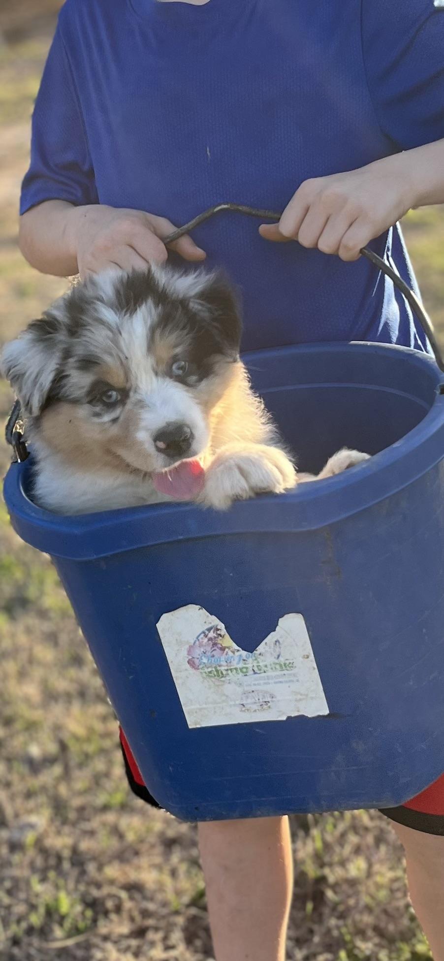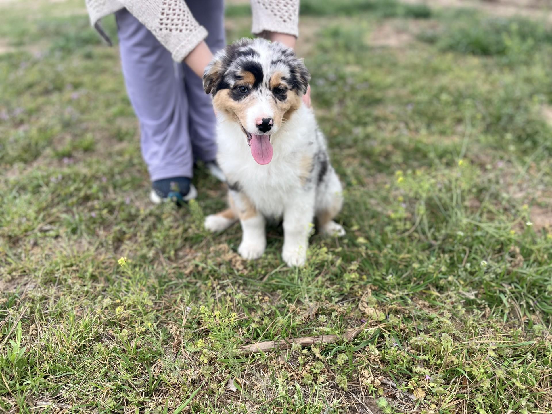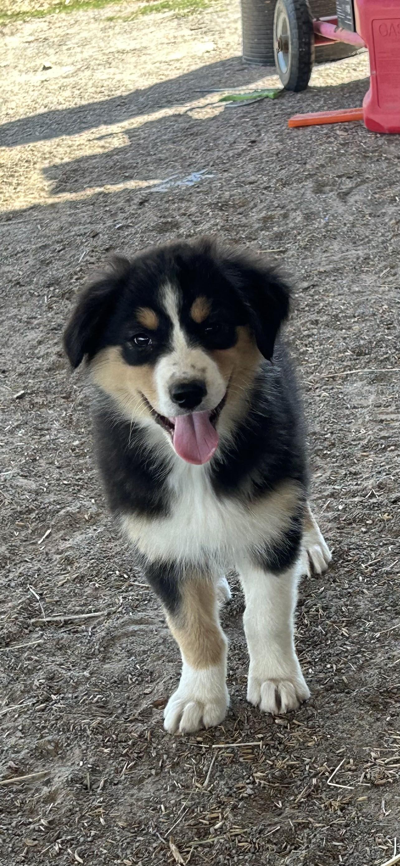 Jessie is loyal and true. She has that aussie wag and loves to be with people. She is super loyal to our family. She is not aggressive while still keeping an eye on our place. She lets us know when animals are out, or people show up. She lives in the house with us and on the farm. She has an easy call on her and listens well. She is always happy, an amazing mother and plays well with other dogs.