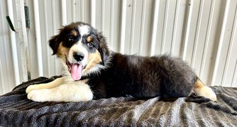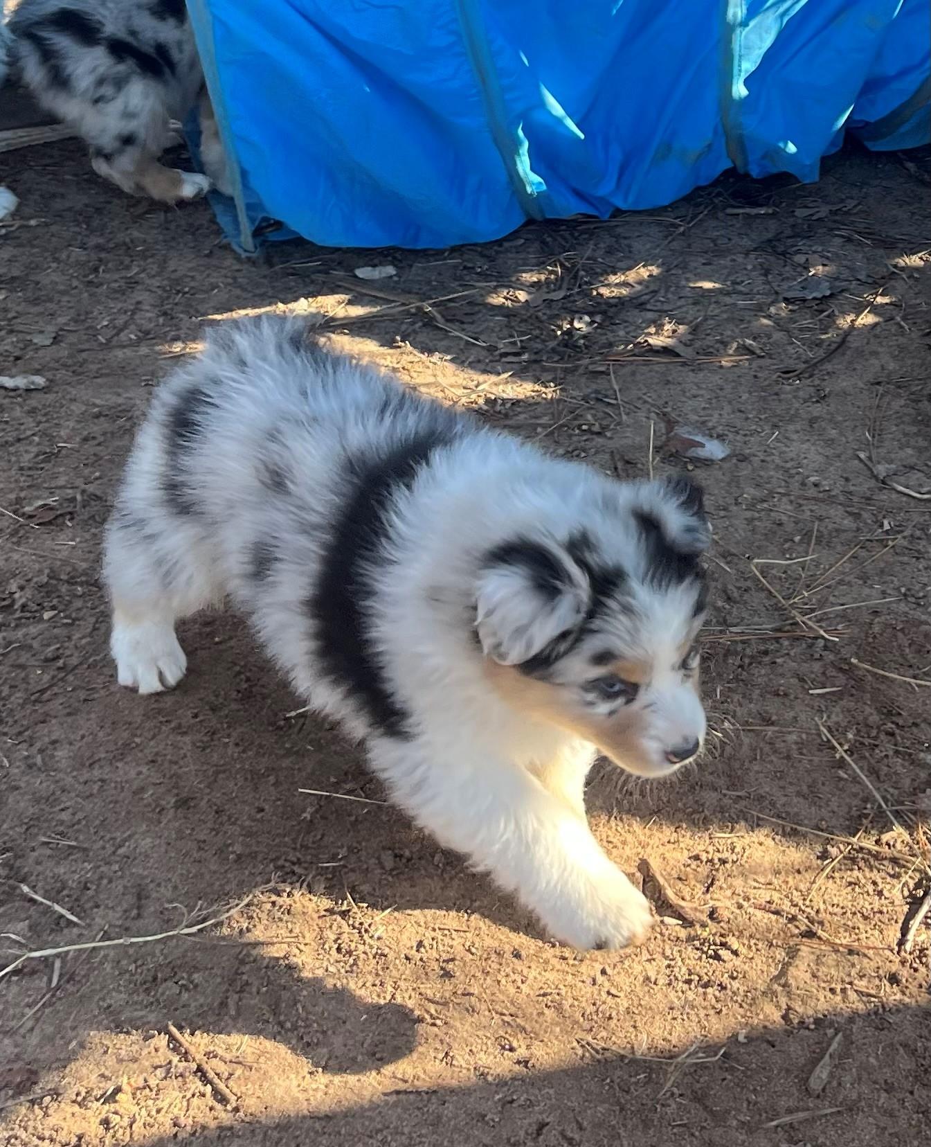Our puppies include blue merle and black tri-color. Colors will vary depending on the parent dogs.