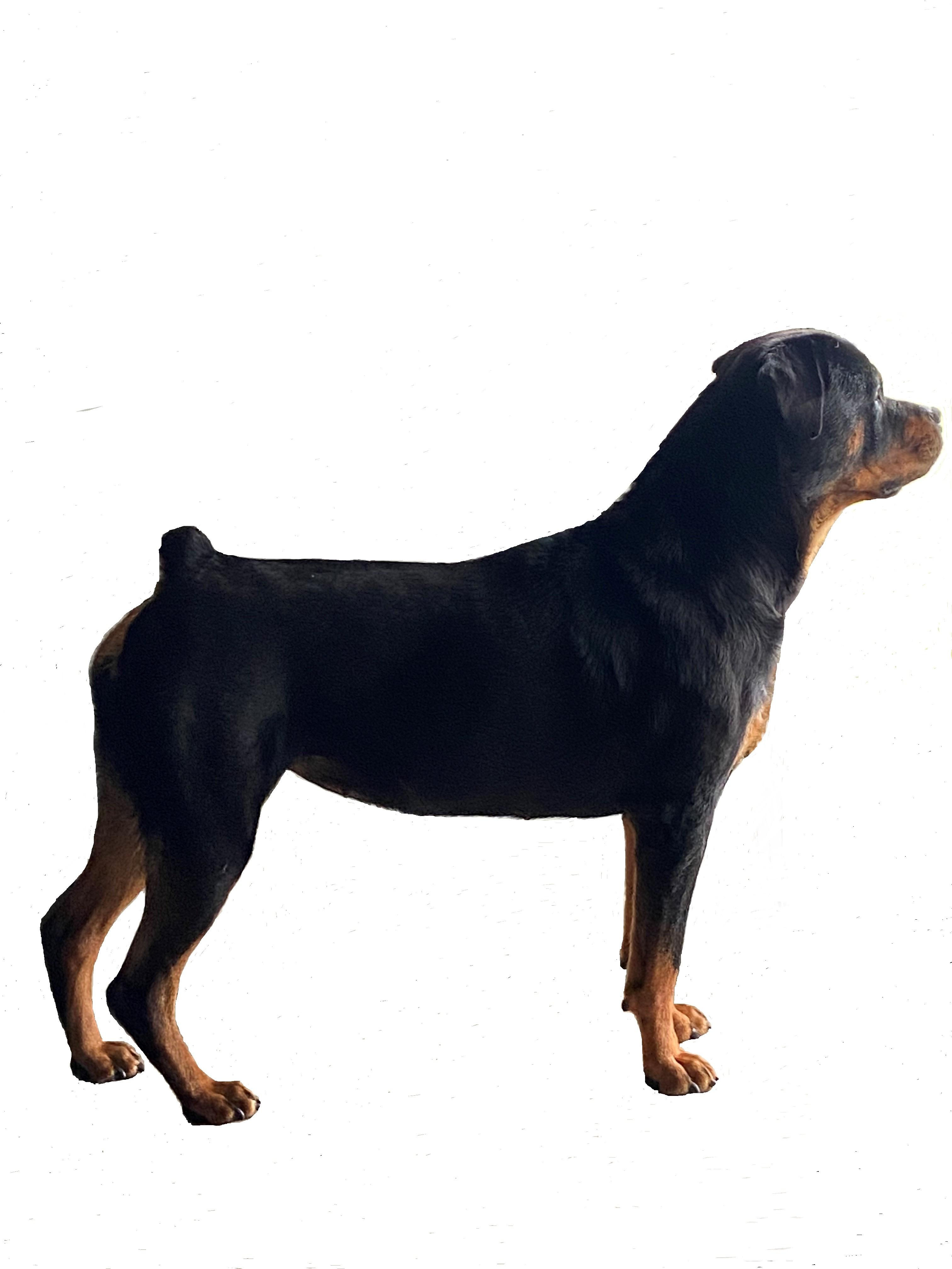 Angel is a female Rottweiler. Carefully selected as a great representative of her breed, Lou decided to make her part of their program. Lou has passed Good Dog’s screening process, which involved a review of their breeding practices, environment, and the mental and physical health of their dogs.