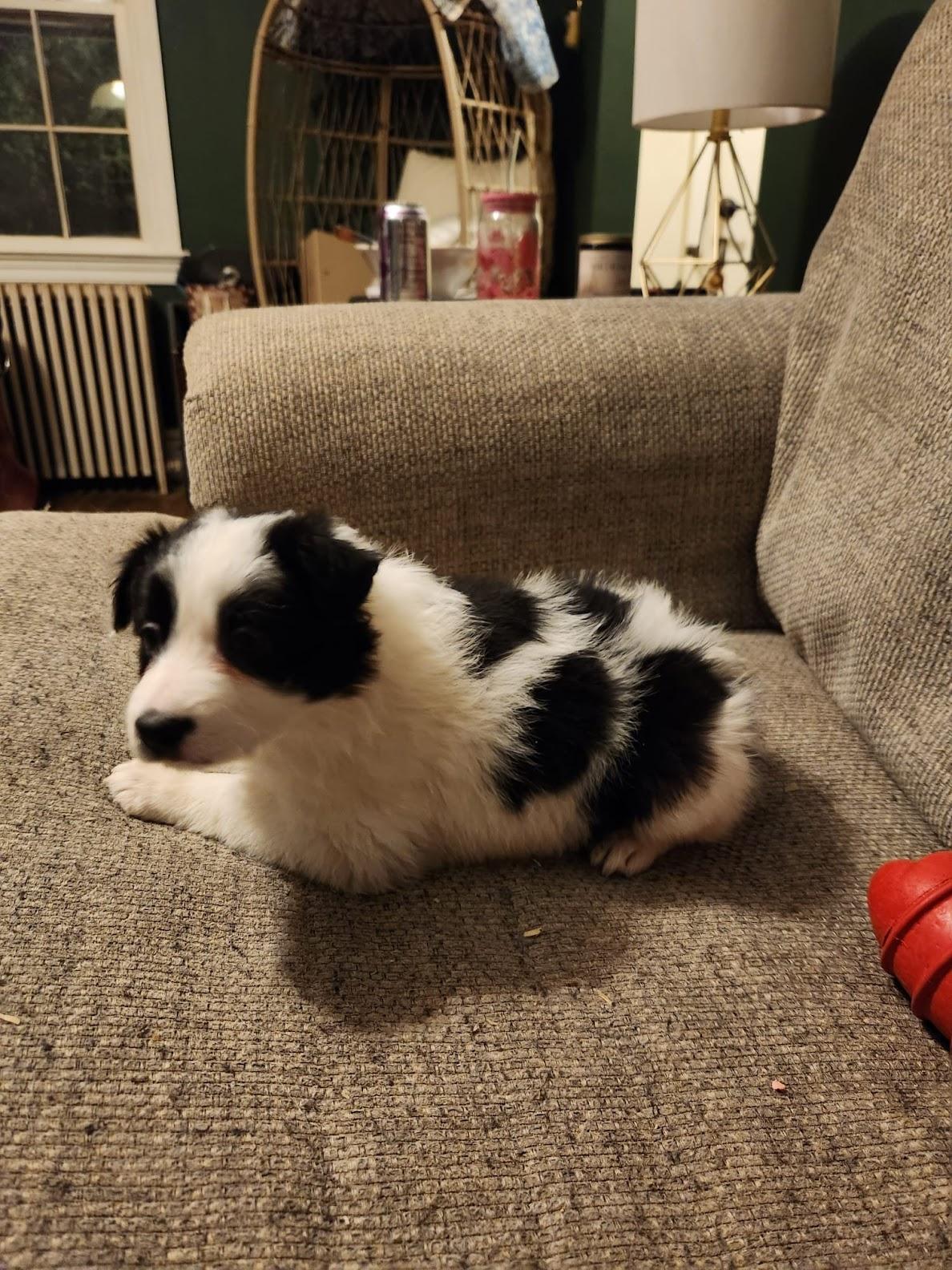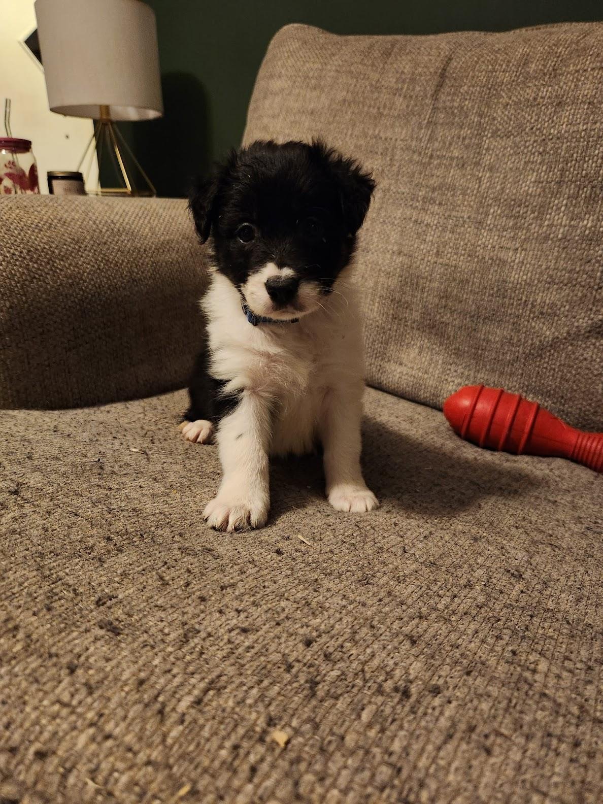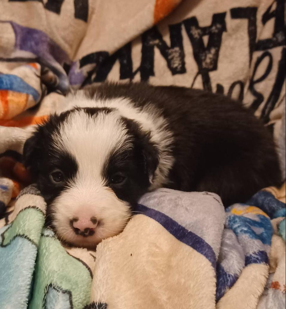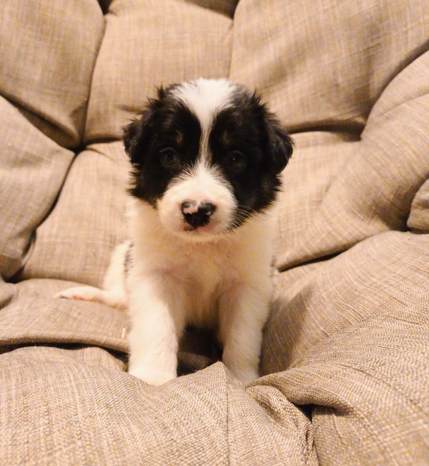 Our puppies include tri-color, black and white, and blue merle. Colors will vary depending on the parent dogs.