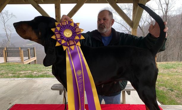 Kelly is a member of American Black and Tan Coonhound Club.