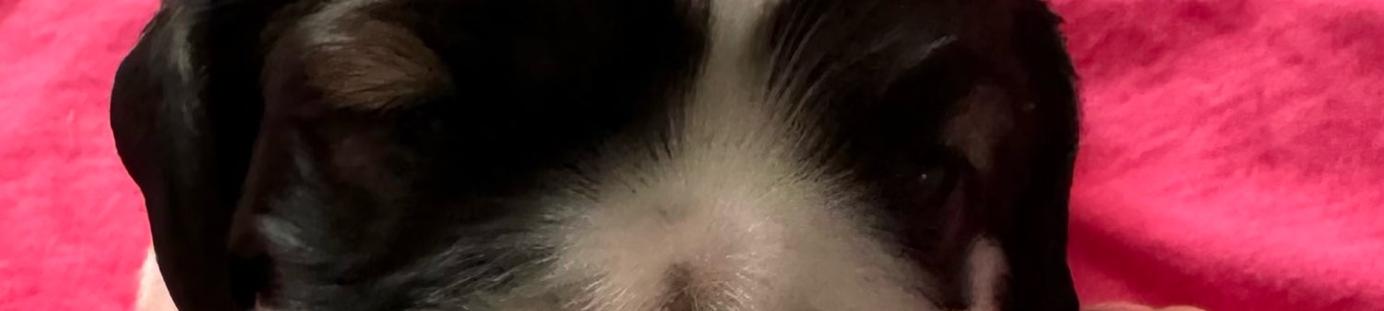 Chocolate, tan and white male who absolutely loves everyone and everything. Very classic Cocker spaniel.
