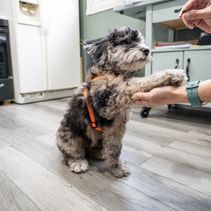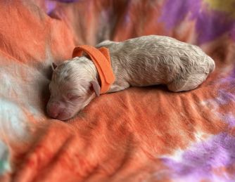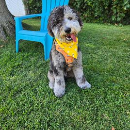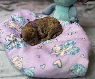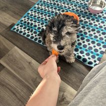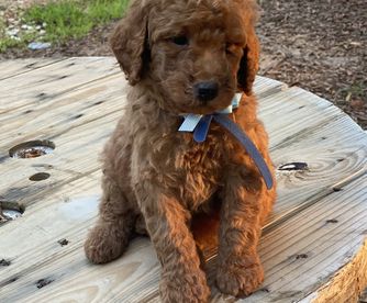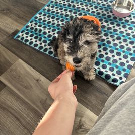 Billie is a playful sweet girl! She is incredibly intelligent and has a lovely personality! She is a first generation moyen Whoodle, her parents are registered and health tested!