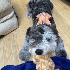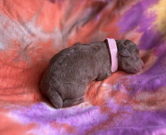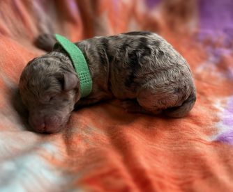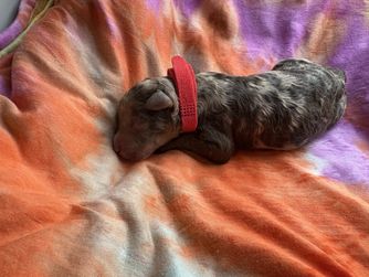 Tiffany is a goofy sweet girl. She is a Merle standard poodle who has been breed and health tested through embark.