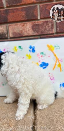 Our Cockapoo puppies include merle, brown and white, and brown and tan. Bernese Mountain Dog puppies are black rust and white. Poodle puppies include black, brown, parti, and phantom. Bernedoodle puppies include sable, tri-color, phantom, and merle. West Highland White Terrier puppies are white. Colors will vary depending on the parent dogs.