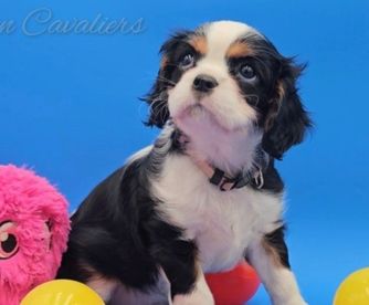 Our puppies include blenheim and tri-color. Colors will vary depending on the parent dogs.