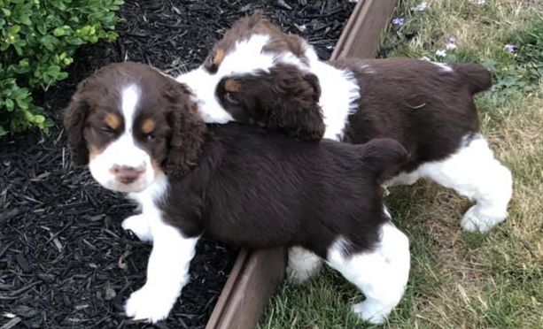 Our puppies are liver and white. Colors will vary depending on the parent dogs.