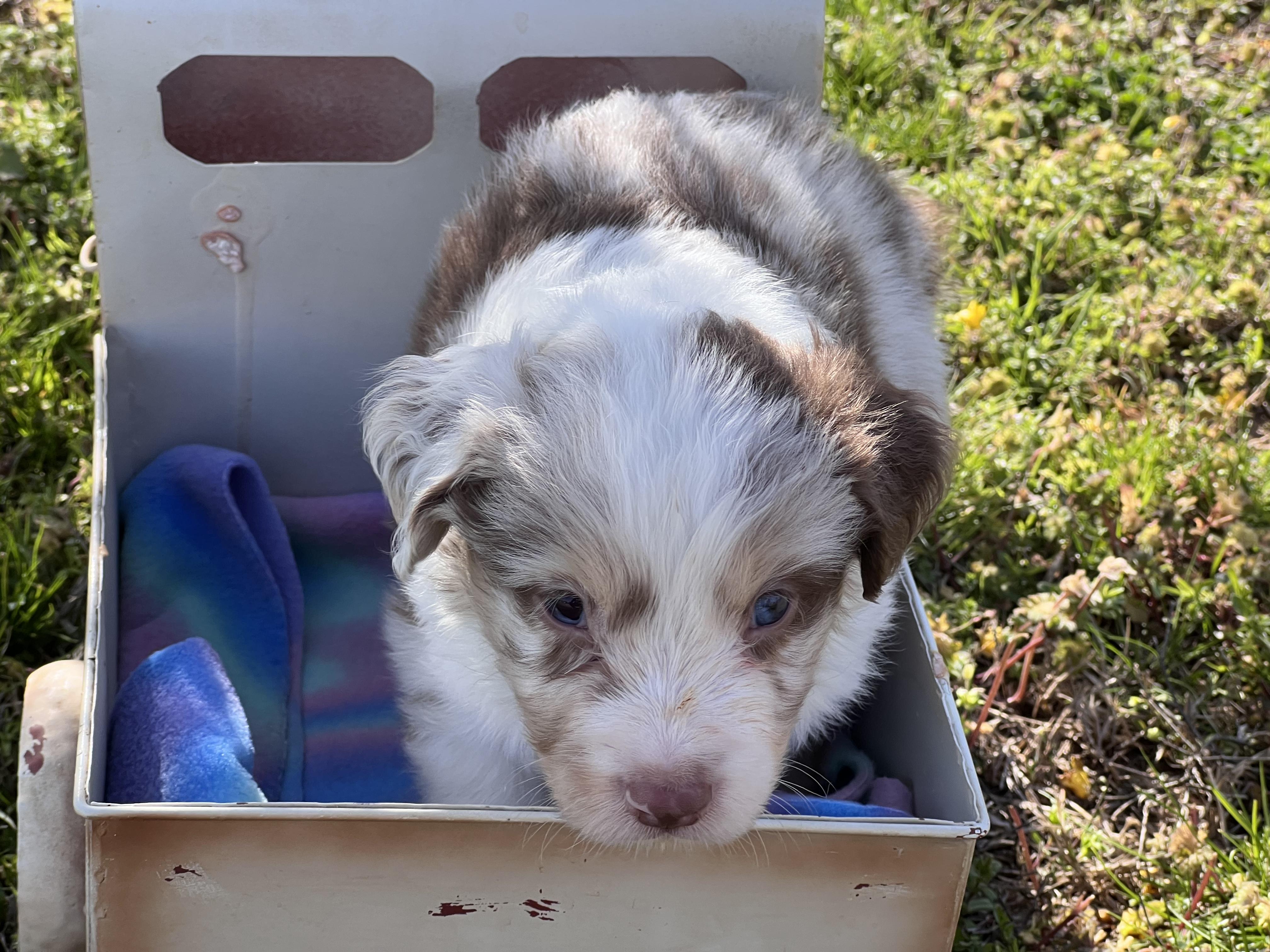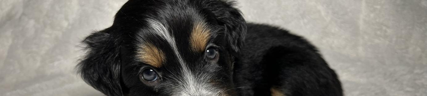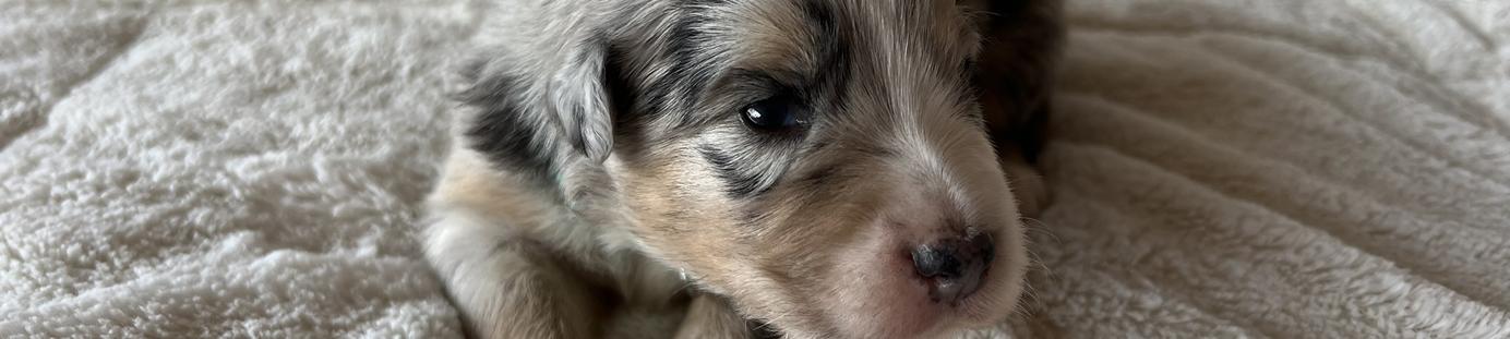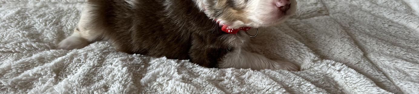 Our puppies include black, red merle, blue merle, and red. Colors will vary depending on the parent dogs.