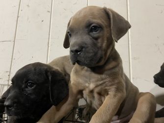 Our puppies include gray and fawn, black, black brindle, and gray. Colors will vary depending on the parent dogs.