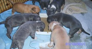 “Puppies are health checked with a licensed veterinarian and parentage, vaccines(age necessary), microchip, samples of heartworm and flea/tick prevention, UKC and/or ADBA registered, and puppy pack. Deposits can be transferred from one litter to another, in certain circumstances. Otherwise deposits are non refundable.”