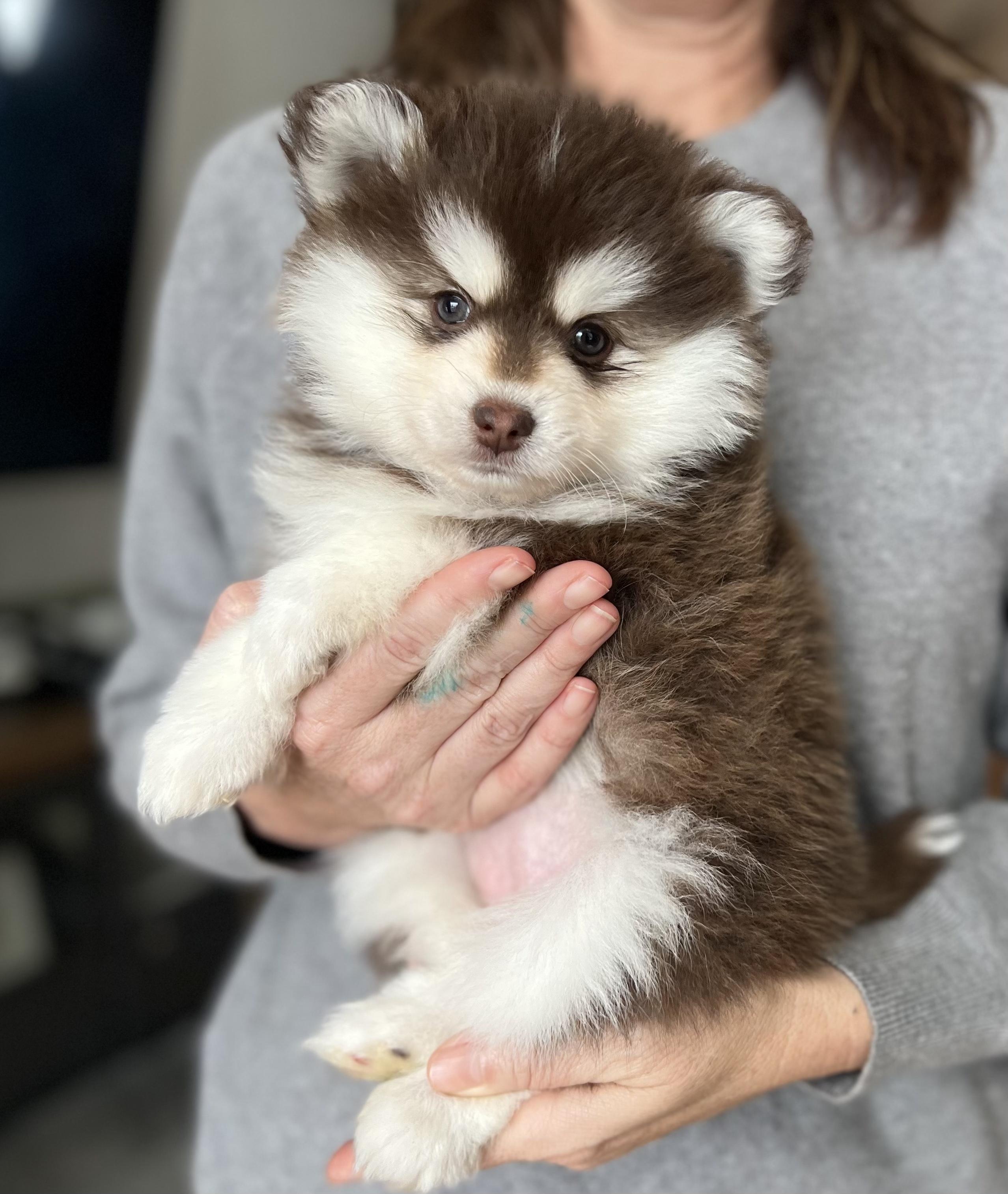 If you’re interested in getting a pomsky puppy, I would highly recommend the breeder Jonelle. She is super wonderful to work with- very responsive with questions and pictures requests, very knowledgeable, and just a breeze to work with! From our first conversation to picking up our puppy from her- everything was handled very smoothly and with professionalism. You can tell her puppies are super well taken care for and we were lucky to pick up our own pomsky- Sushi from her. We couldn’t be more excited to welcome Sushi into our home and grateful to have worked with Jonelle throughout the process!