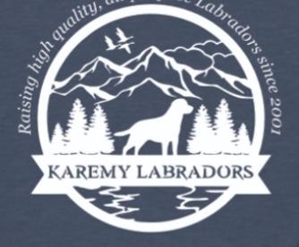 My moto is "It's a family thing because at Karemy we care!" I maintain a private Facebook group of hundreds of my puppy's families over the 25 years of working with Labrador Retrievers. We host a yearly family reunion & calendar contest each fall. I try to stay in touch with as many families as possible and encourage all prospective families to make a visit to our home to meet us and our dogs.