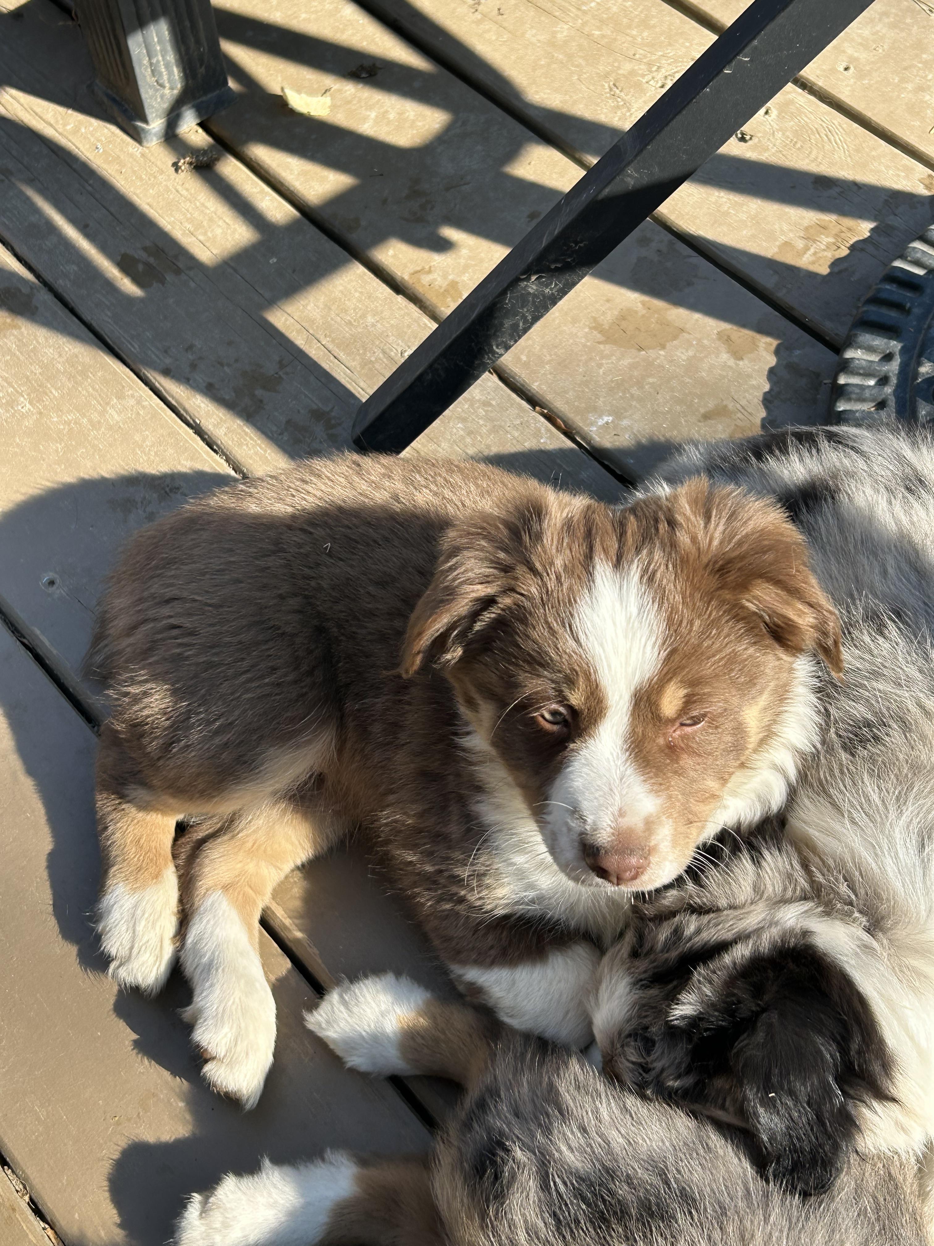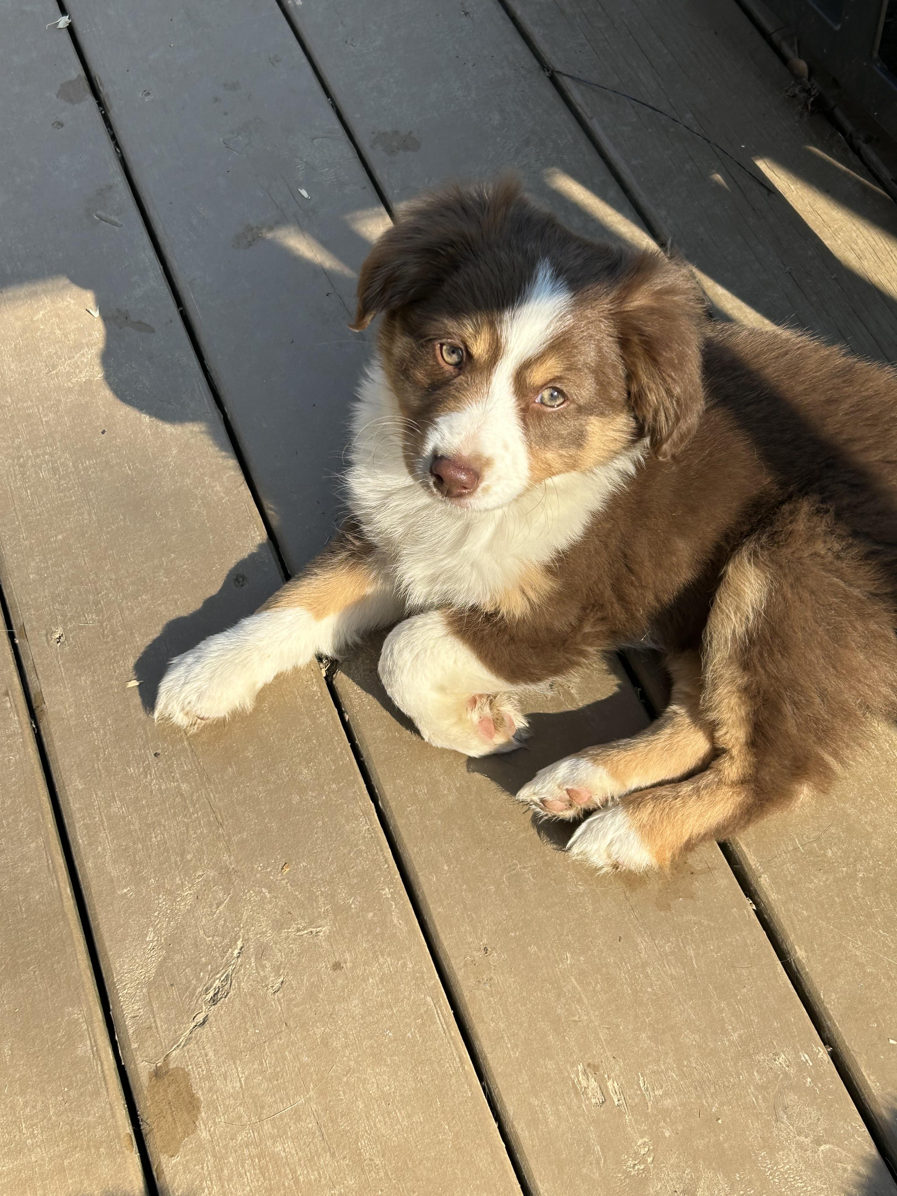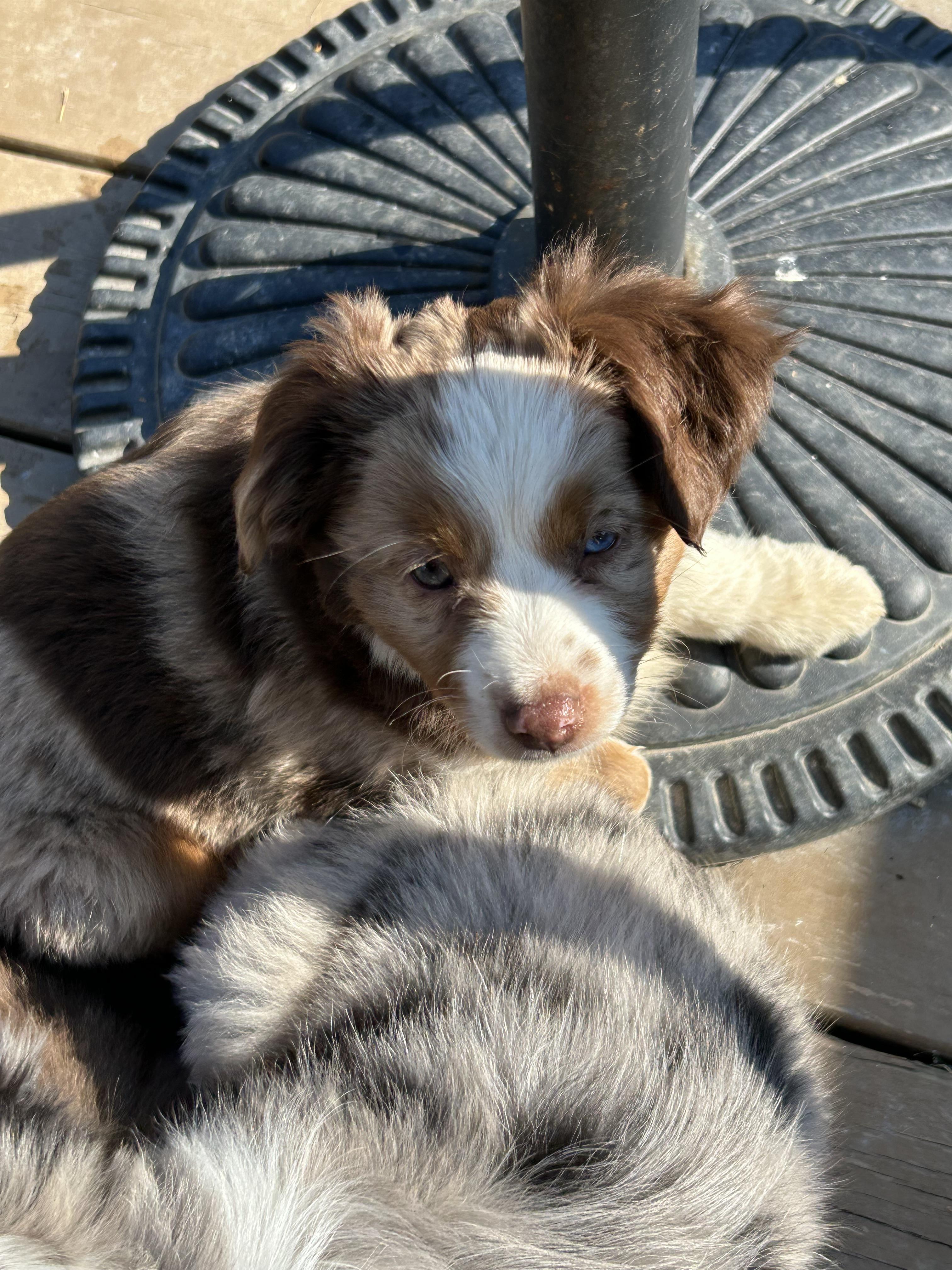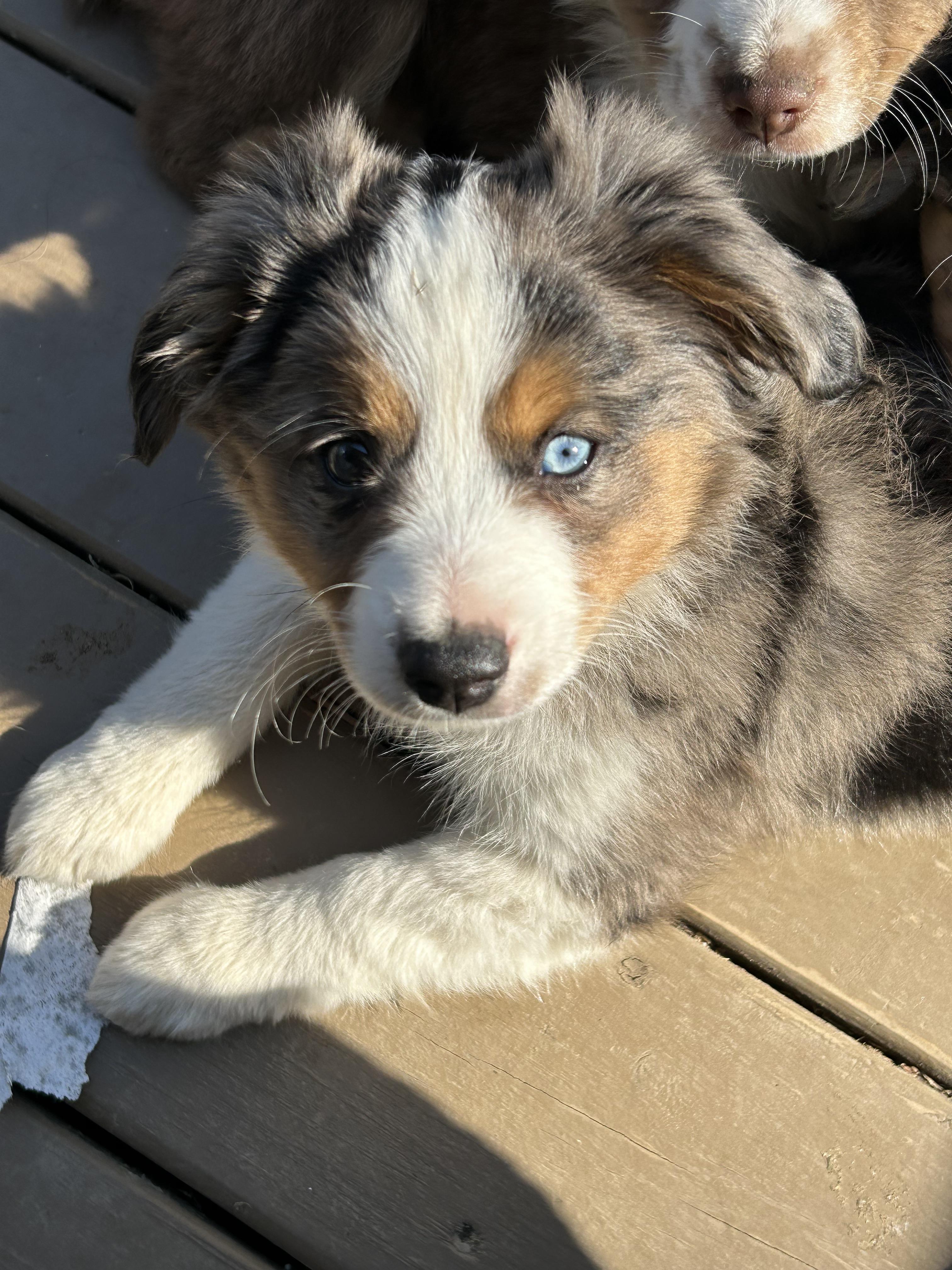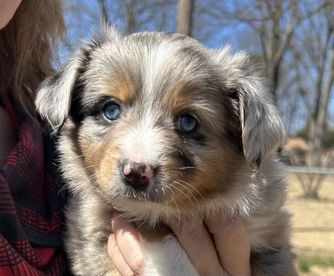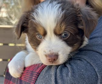 Our Miniature Australian Shepherd puppies include blue merle, red tri, and red merle. Colors will vary depending on the parent dogs.