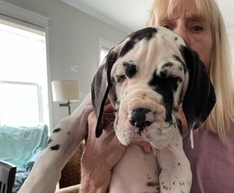 Scarlett is a female Great Dane. Carefully selected as a great representative of her breed, Karen decided to make her part of their program. Karen has passed Good Dog’s screening process, which involved a review of their breeding practices, environment, and the mental and physical health of their dogs.