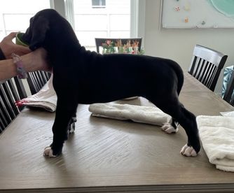 Rhett is a male Great Dane. Carefully selected as a great representative of his breed, Karen decided to make him part of their program. Karen has passed Good Dog’s screening process, which involved a review of their breeding practices, environment, and the mental and physical health of their dogs.