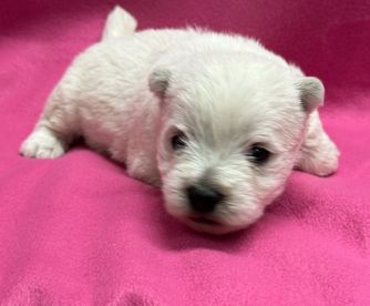 Pearl is a female West Highland White Terrier almost 2 years old. Carefully selected as a great representative of her breed, Karen decided to make her part of their program. Karen has passed Good Dog’s screening process, which involved a review of their breeding practices, environment, and the mental and physical health of their dogs.
