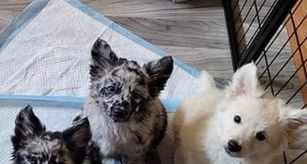 Our puppies include black merle, yellow, and white. Colors will vary depending on the parent dogs.