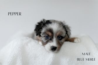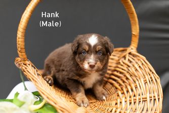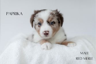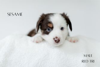 Our puppies include blue merle, black tri, red tri, and red merle. Colors will vary depending on the parent dogs.