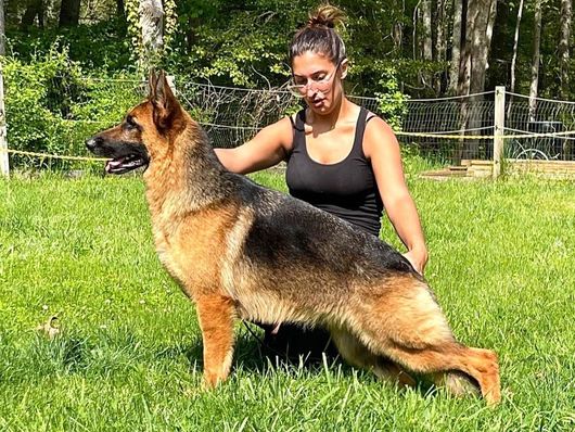 Courtney is a wonderful breeder and person! She has always been responsive to me. We met up a bunch of time at shows and she helped me even show my pup! She’s always a text away for dog advice and recommendations despite her being insanely busy. The amount of compliments I get of my dog about his appearance and temperament is crazy. Everywhere I go they ask me where I got him from. I do believe Karma Kennels breeds very well rounded dogs. Courtney matched me with my perfect dog. And it’s not if I will be getting another pup from her, it’s only the matter of WHEN I will be getting another one from her. I would recommend Karma Kennels to everyone who is able to handle a German Shepherd.