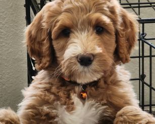 Indy a mini F1b Goldendoodle. She has a gentle personality, loves her people, and loves other dogs. She is a great companion.