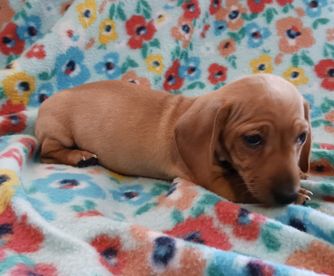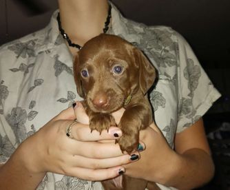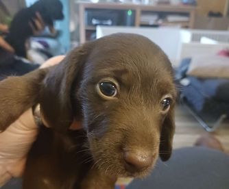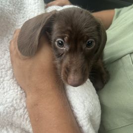 I have been looking for a mini dachshund and I found kary and she had the cutest puppies before I even purchased my puppy, she went into detail about how the whole system works, and how long it would take me to pick him up and she would send me videos pictures when he changed foods and what stands out about him the most so I would definitely reach out to kary again if ever need another puppy and she was very great to work with!