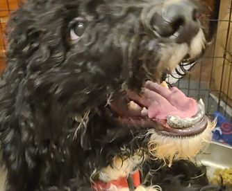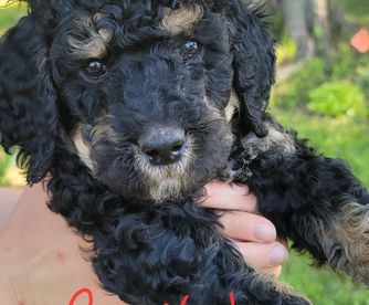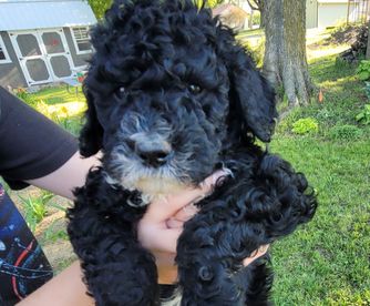 Rosie is actually a Bernedoodle. Her coat is soft and wavy. She is very affectionate and definitely a people pleaser. She thinks she is everyone's mom.